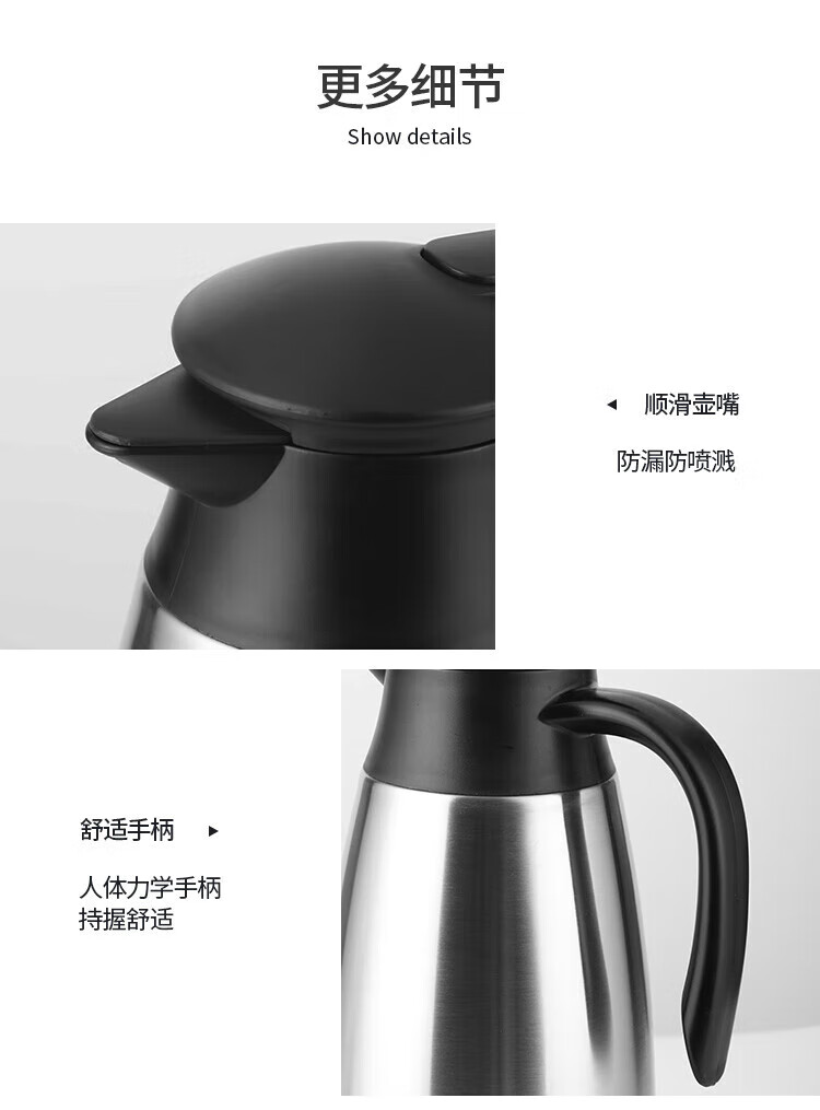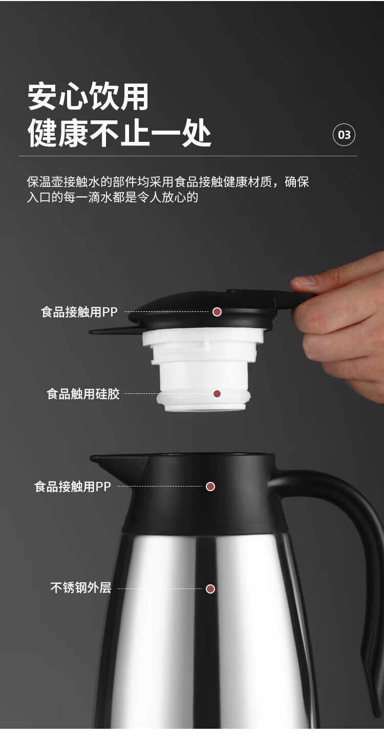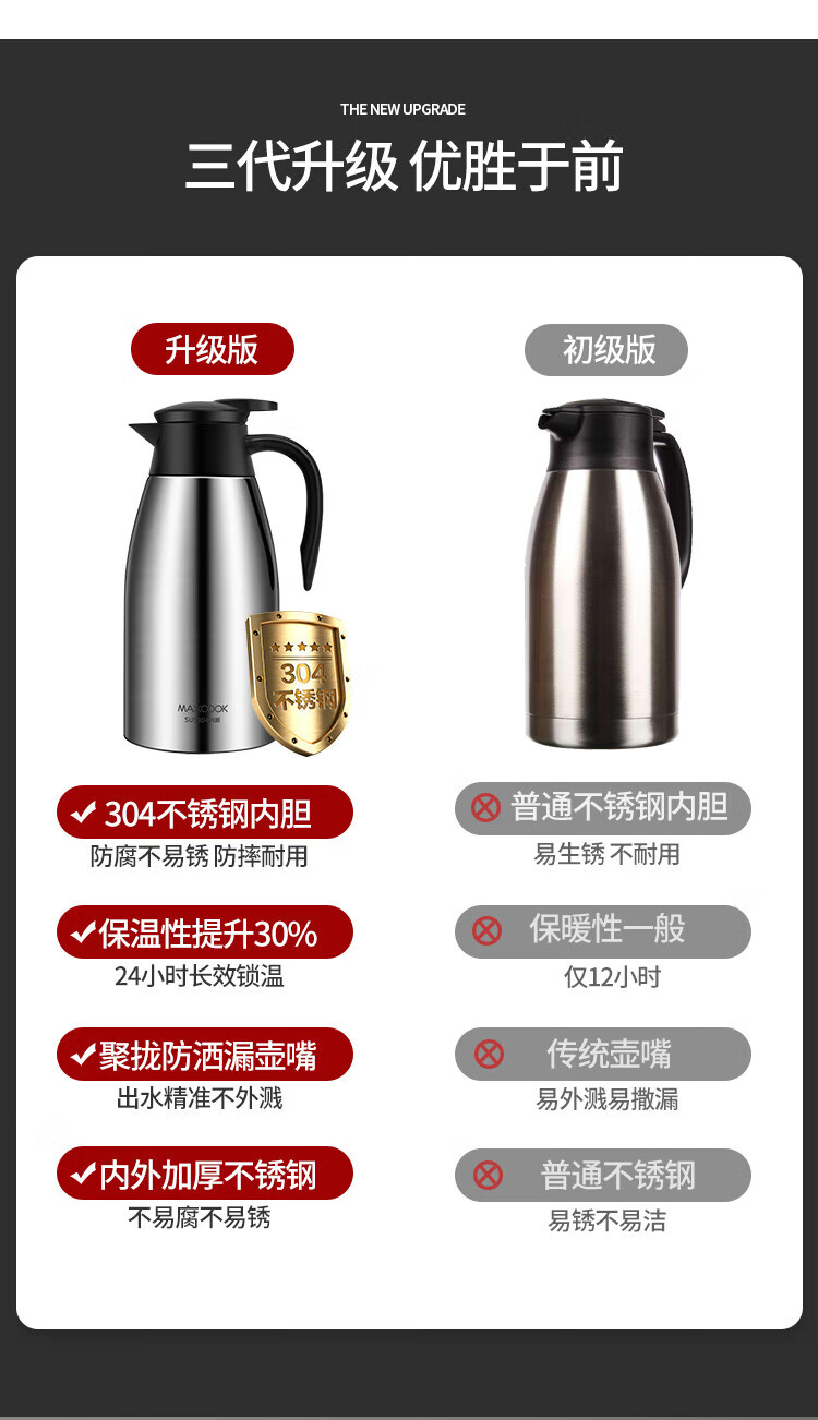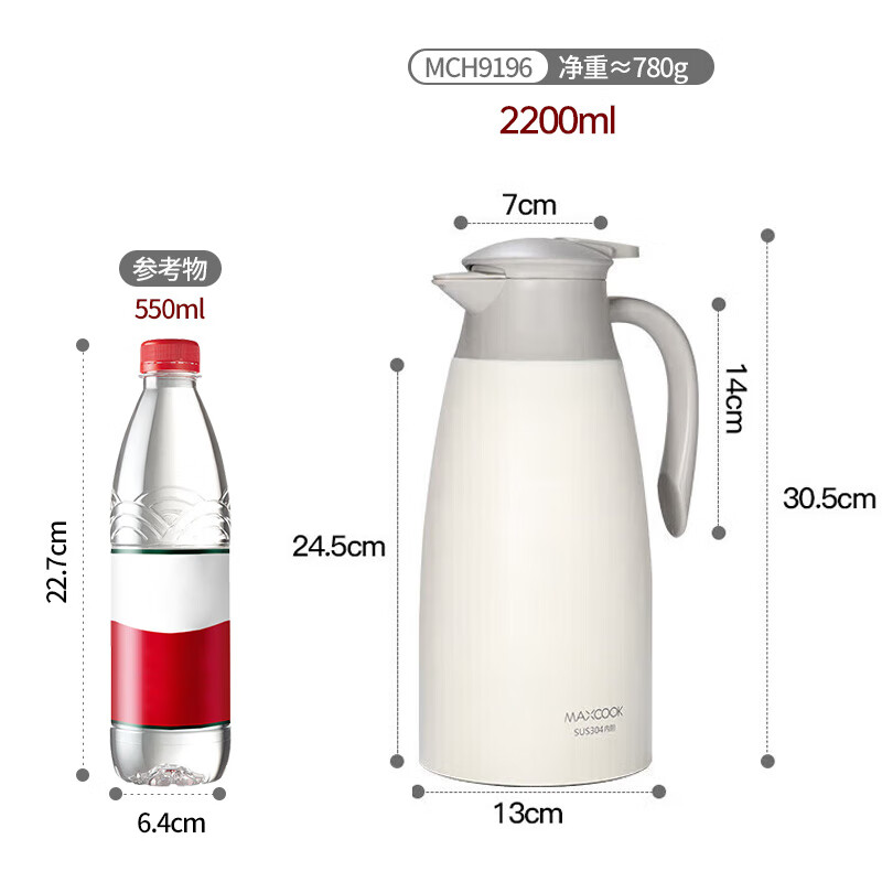 商品名称:美厨304不锈钢真空保温水壶2.2L MCH9196