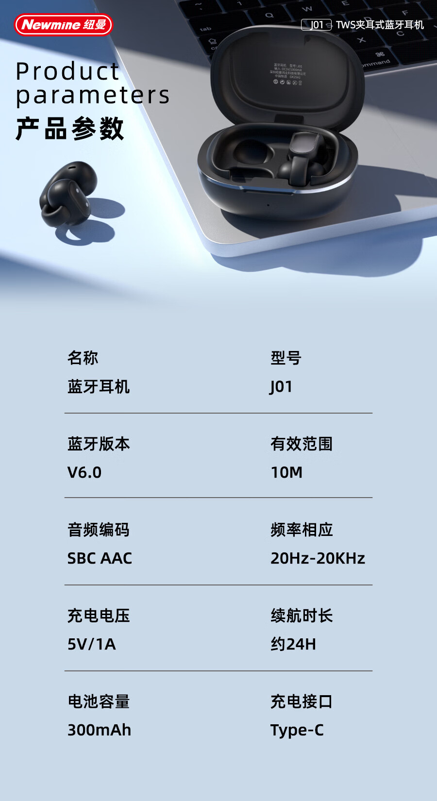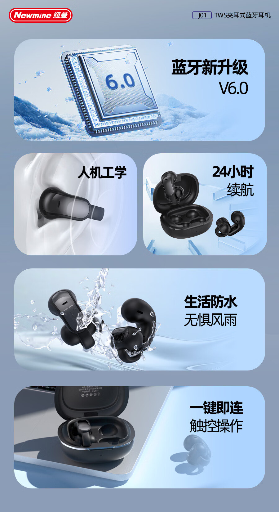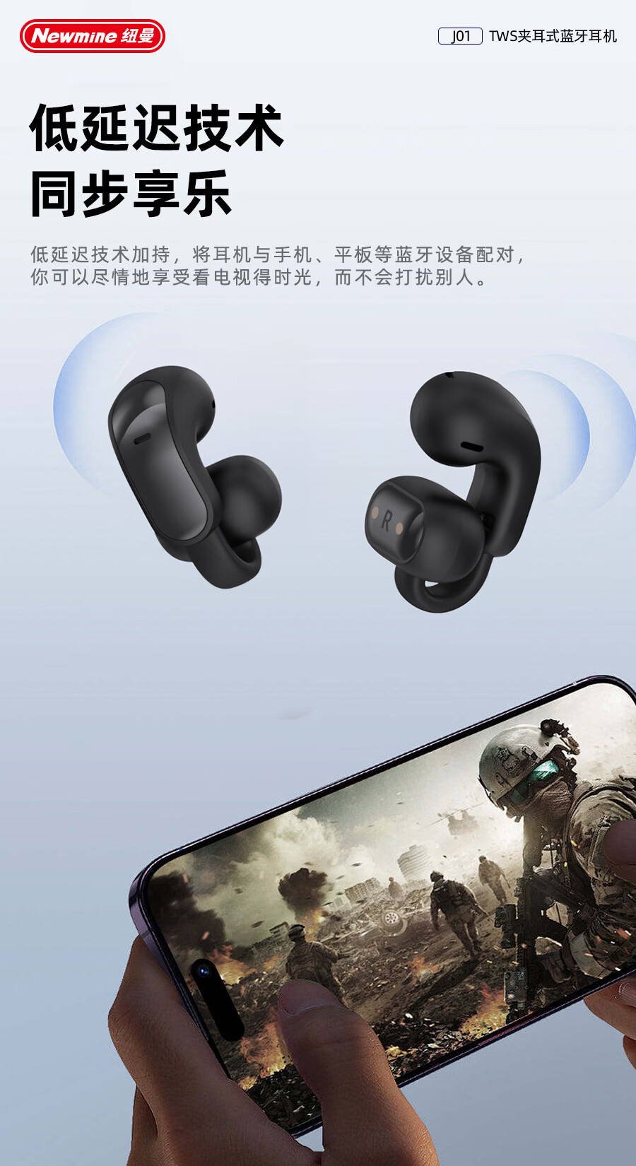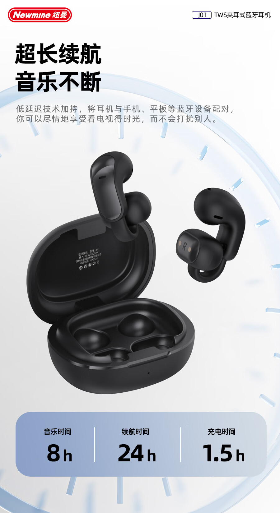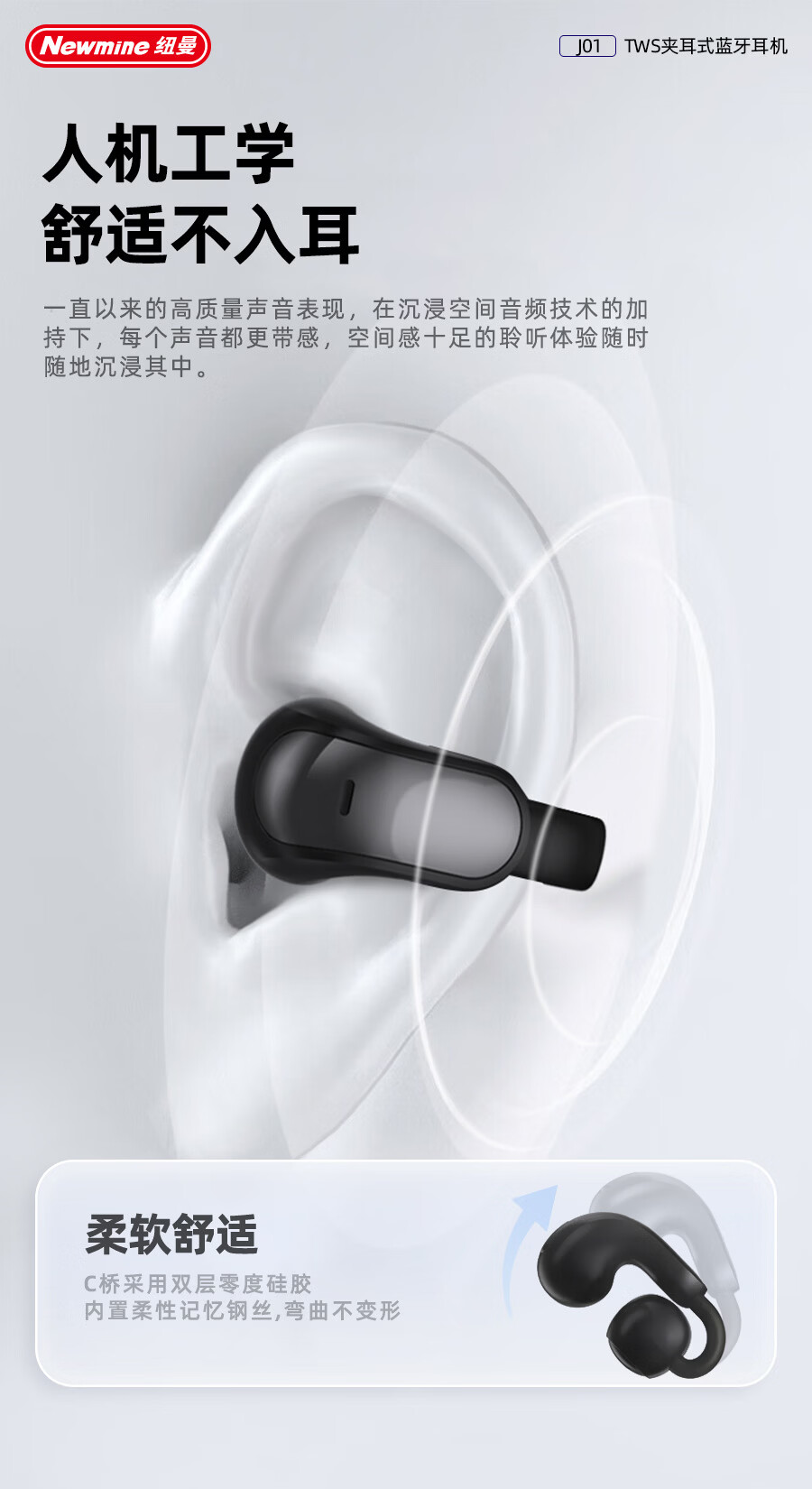 商品名称:纽曼 夹耳式OWS蓝牙耳机 J01