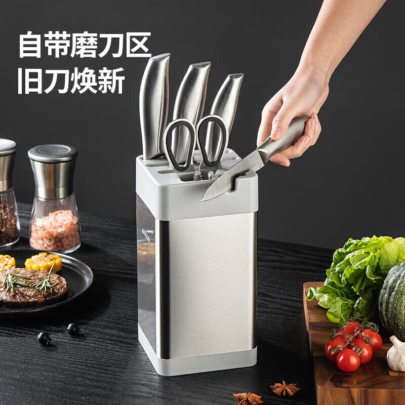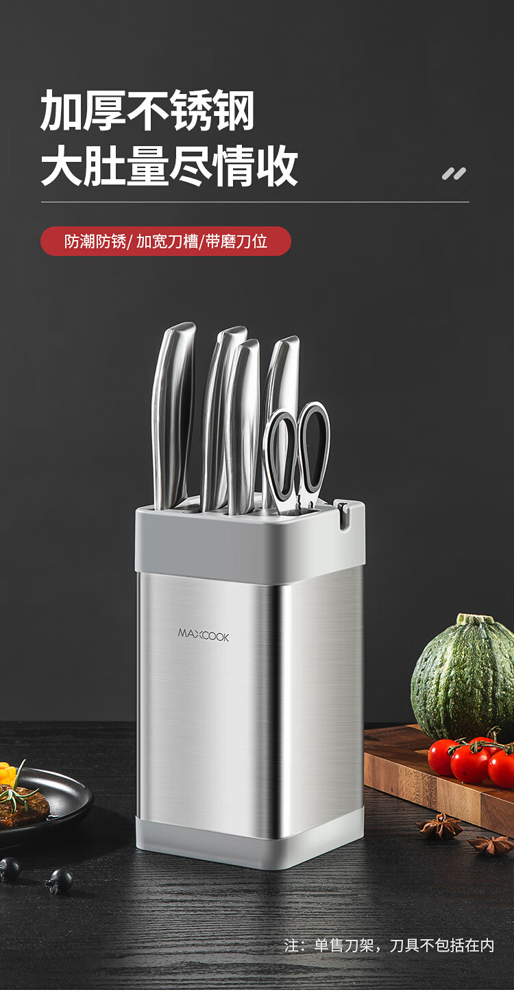 美厨不锈钢刀架(自带磨刀器款)11.3*11.3*22cm MCD8168