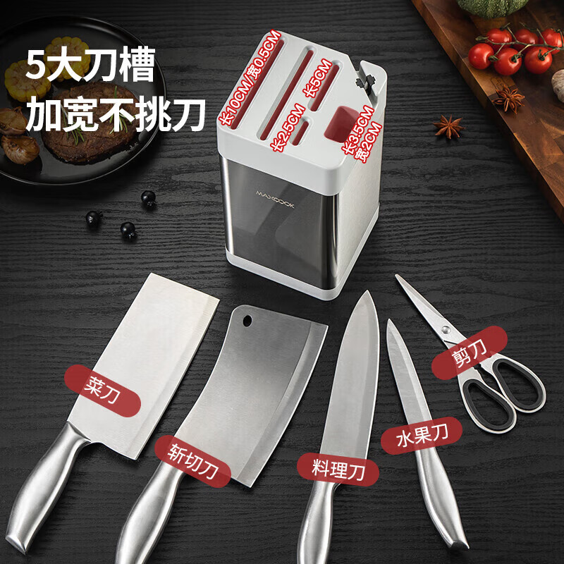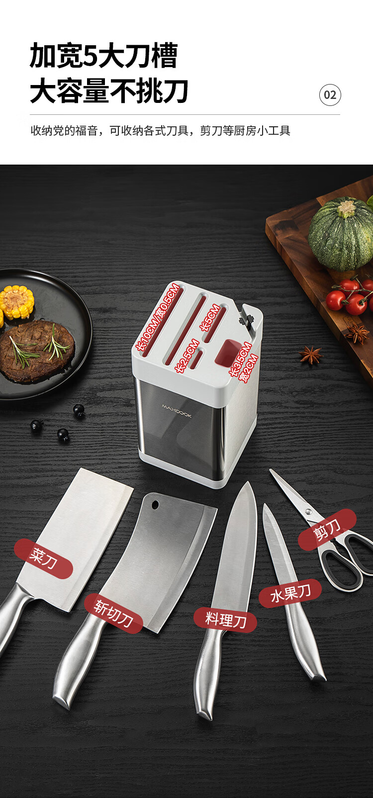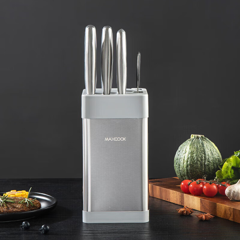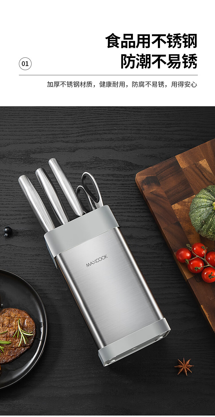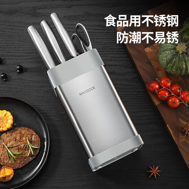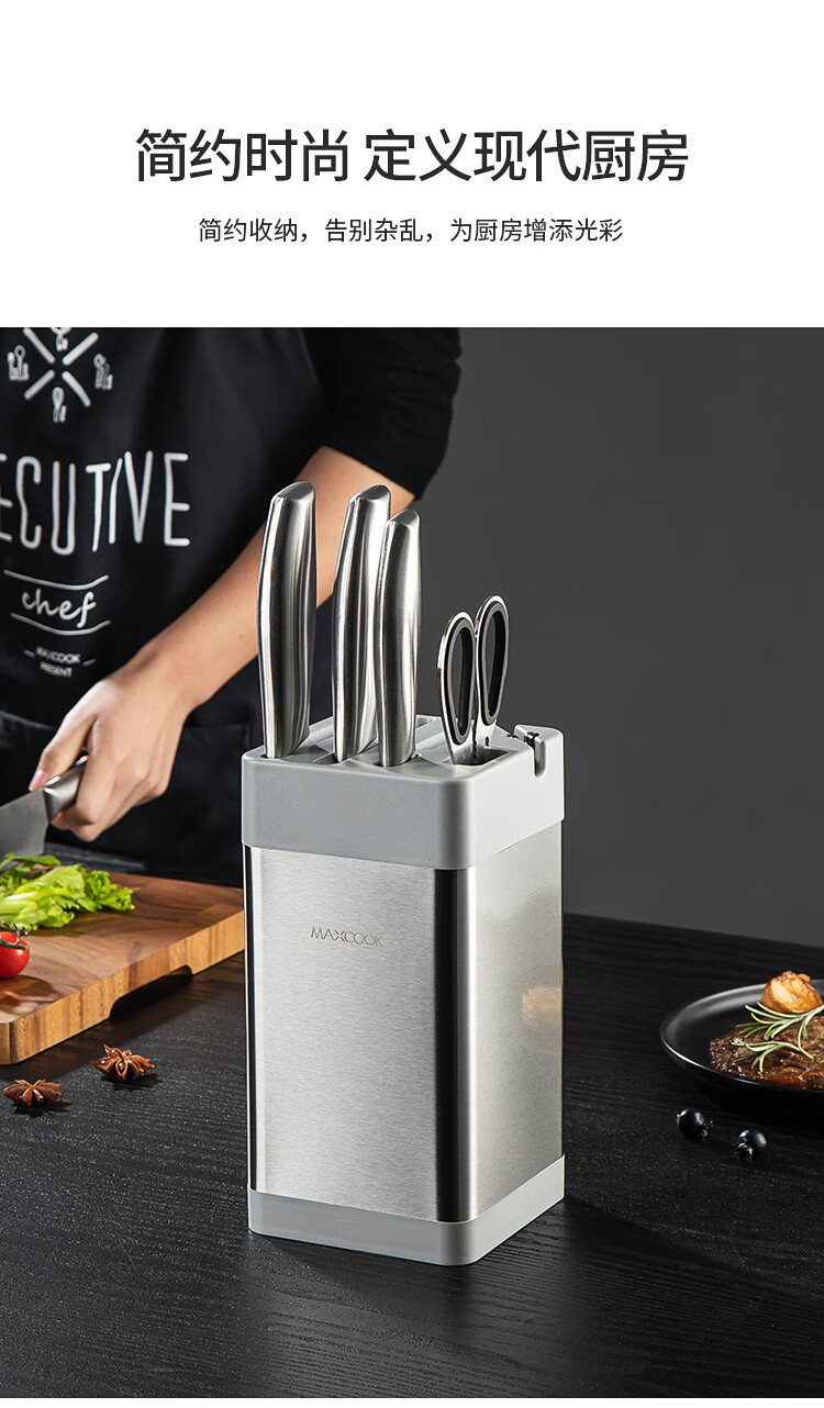 商品名称:美厨不锈钢刀架(自带磨刀器款)11.3*11.3*22cm MCD8168