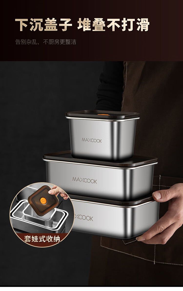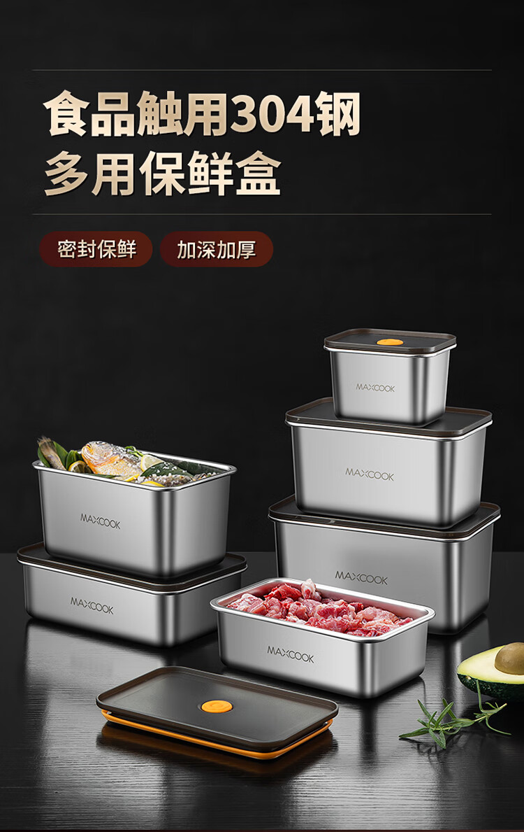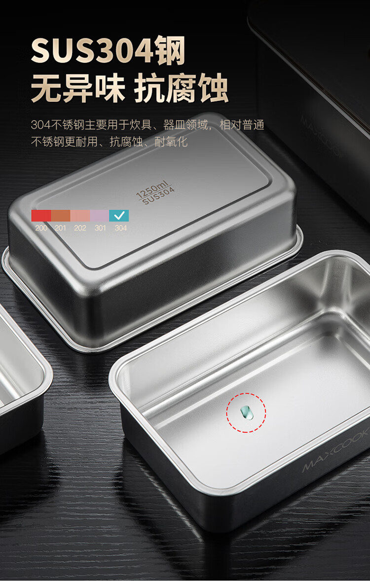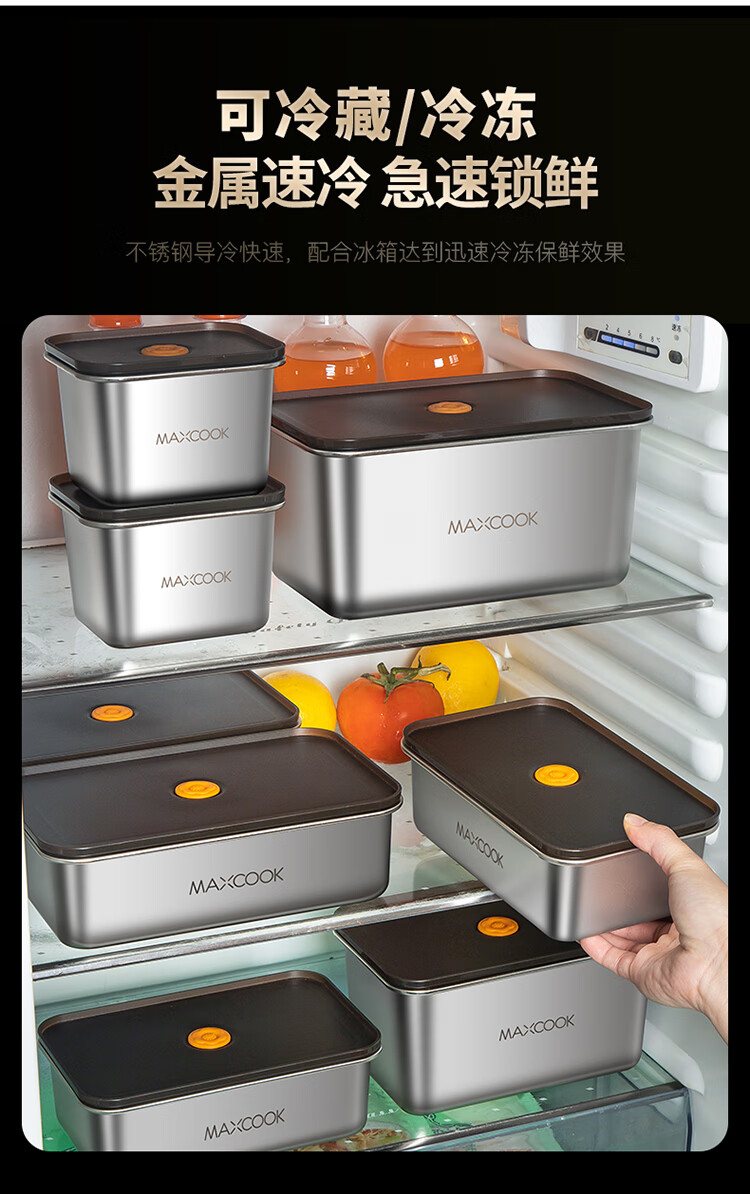 商品名称:美厨304不锈钢保鲜盒2100ml MCFT5588