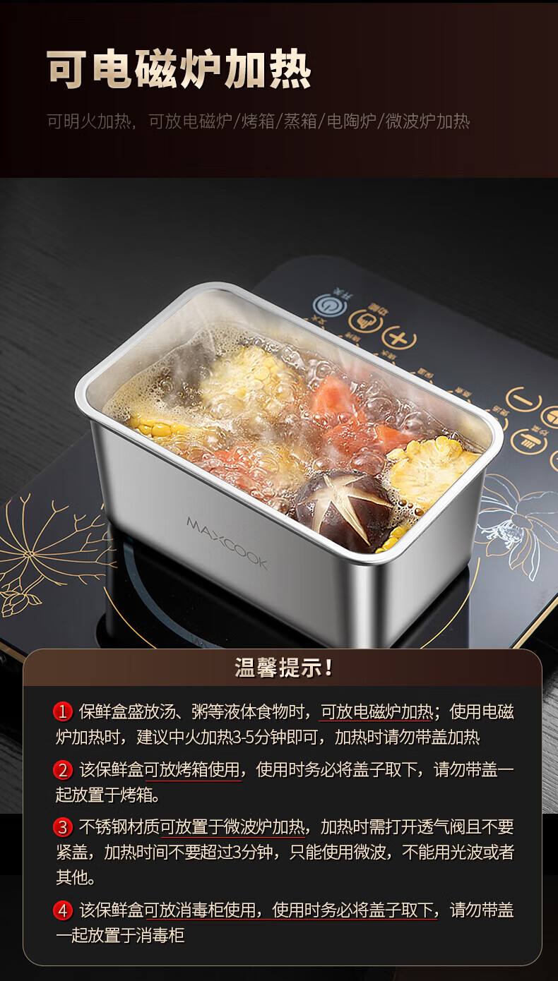 美厨304不锈钢保鲜盒2100ml MCFT5588