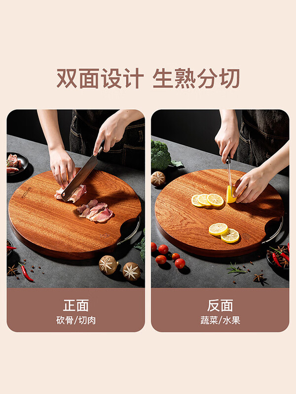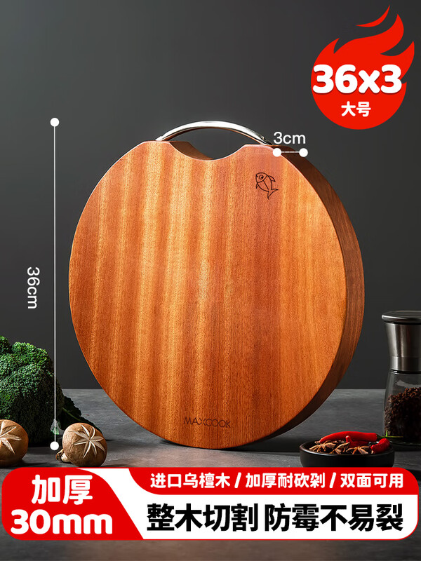 商品名称:美厨加厚圆形乌檀木砧板 MCPJ901