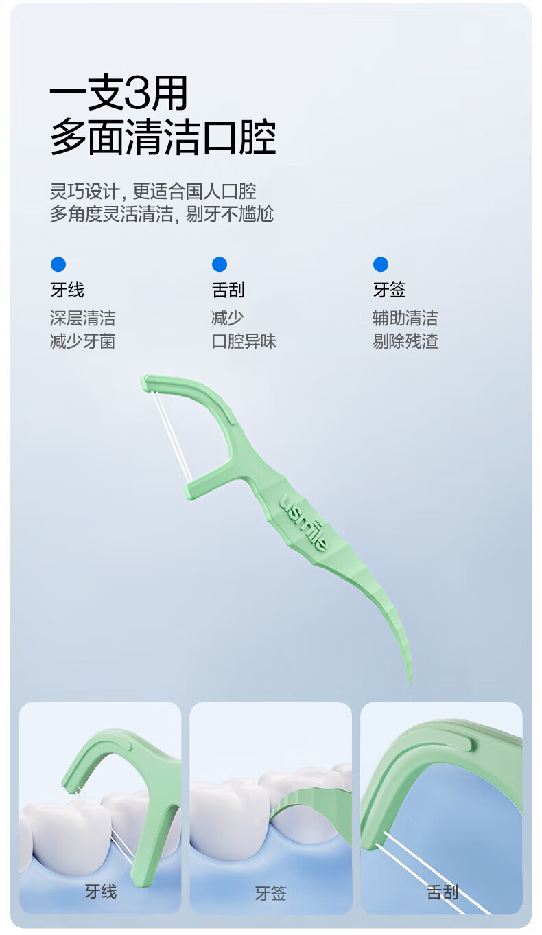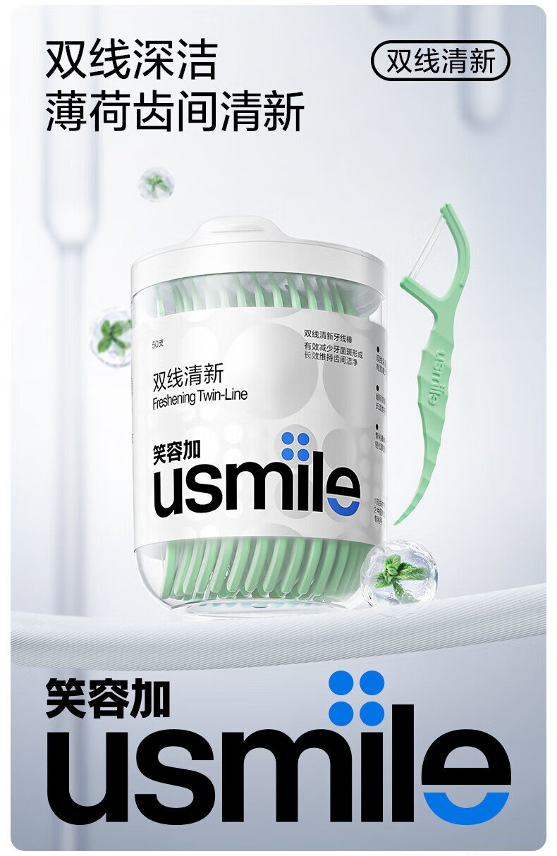 商品名称:usmile笑容加 小海马双线清新牙线棒 50根
