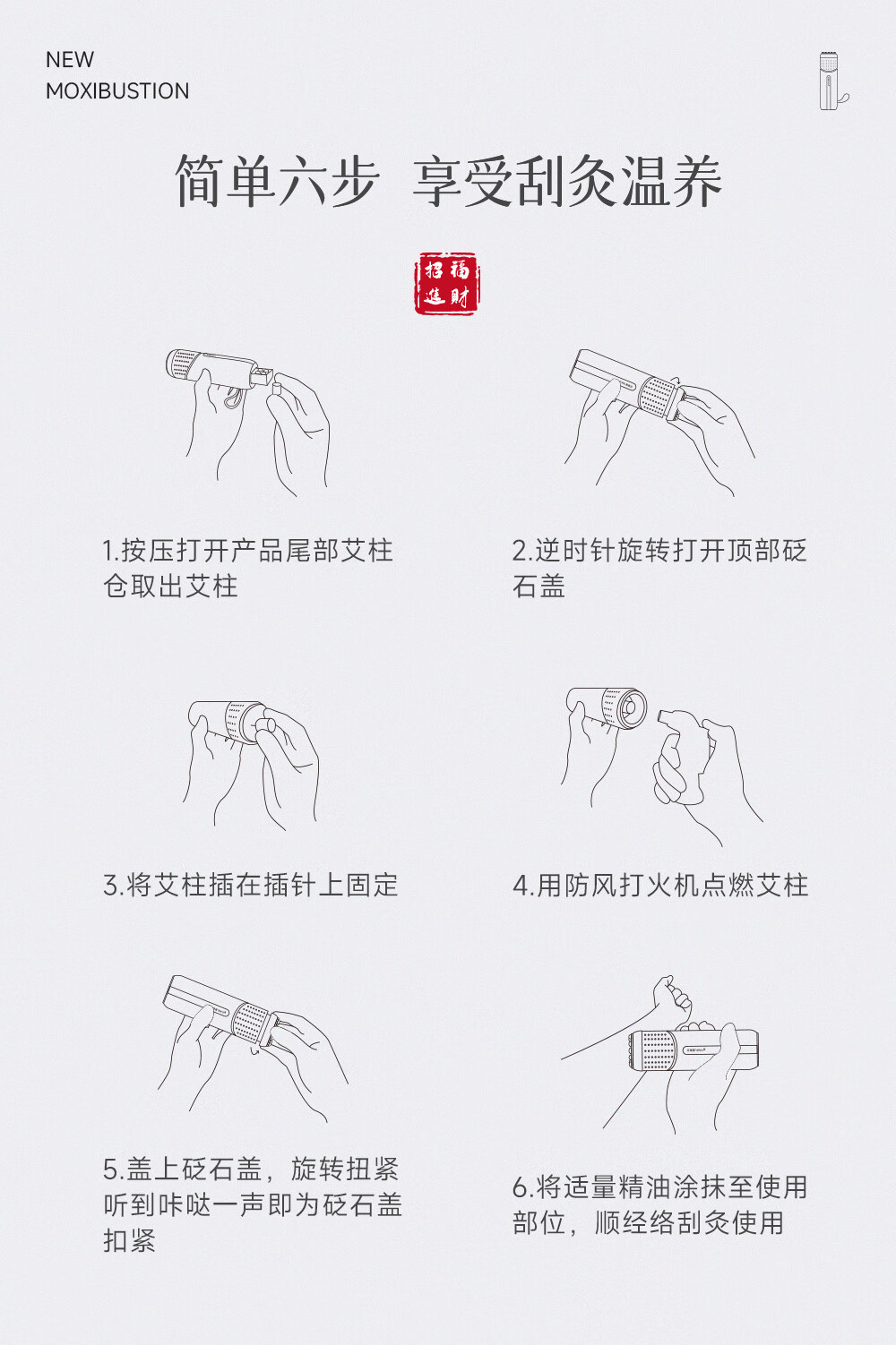 包装清单 :1套/盒 (1只装)10ml艾精油1瓶,28粒艾柱1盒