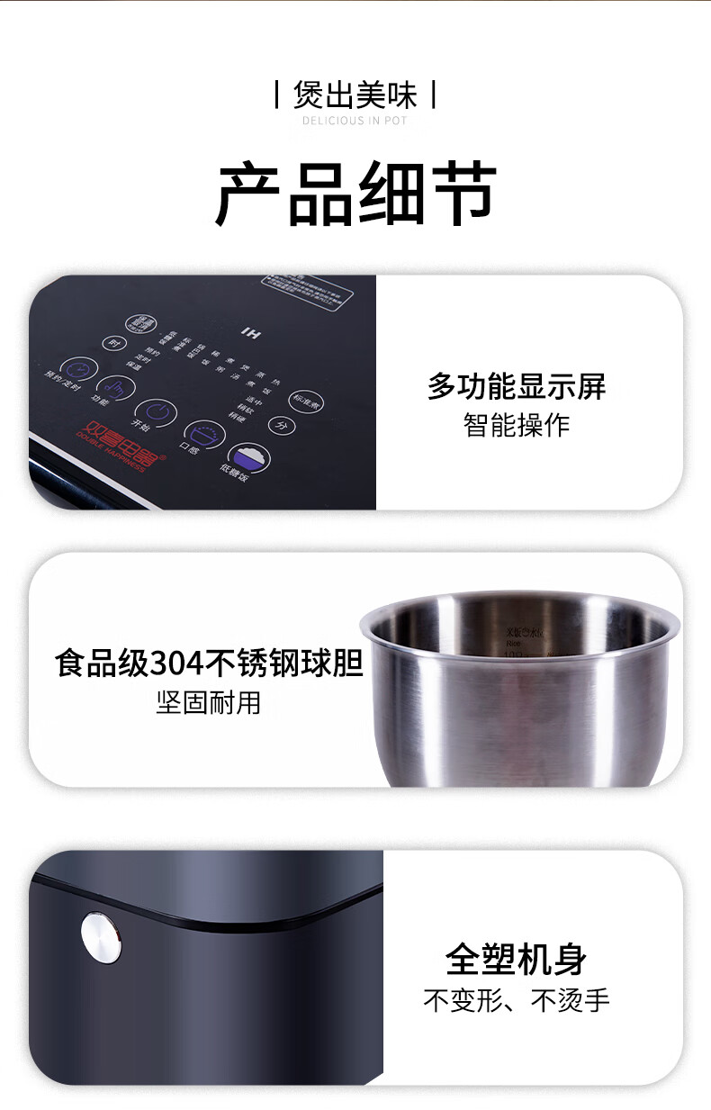 商品名称:双喜天幕纯平IH智能电饭煲(升级版)4L DF-040SDFH10