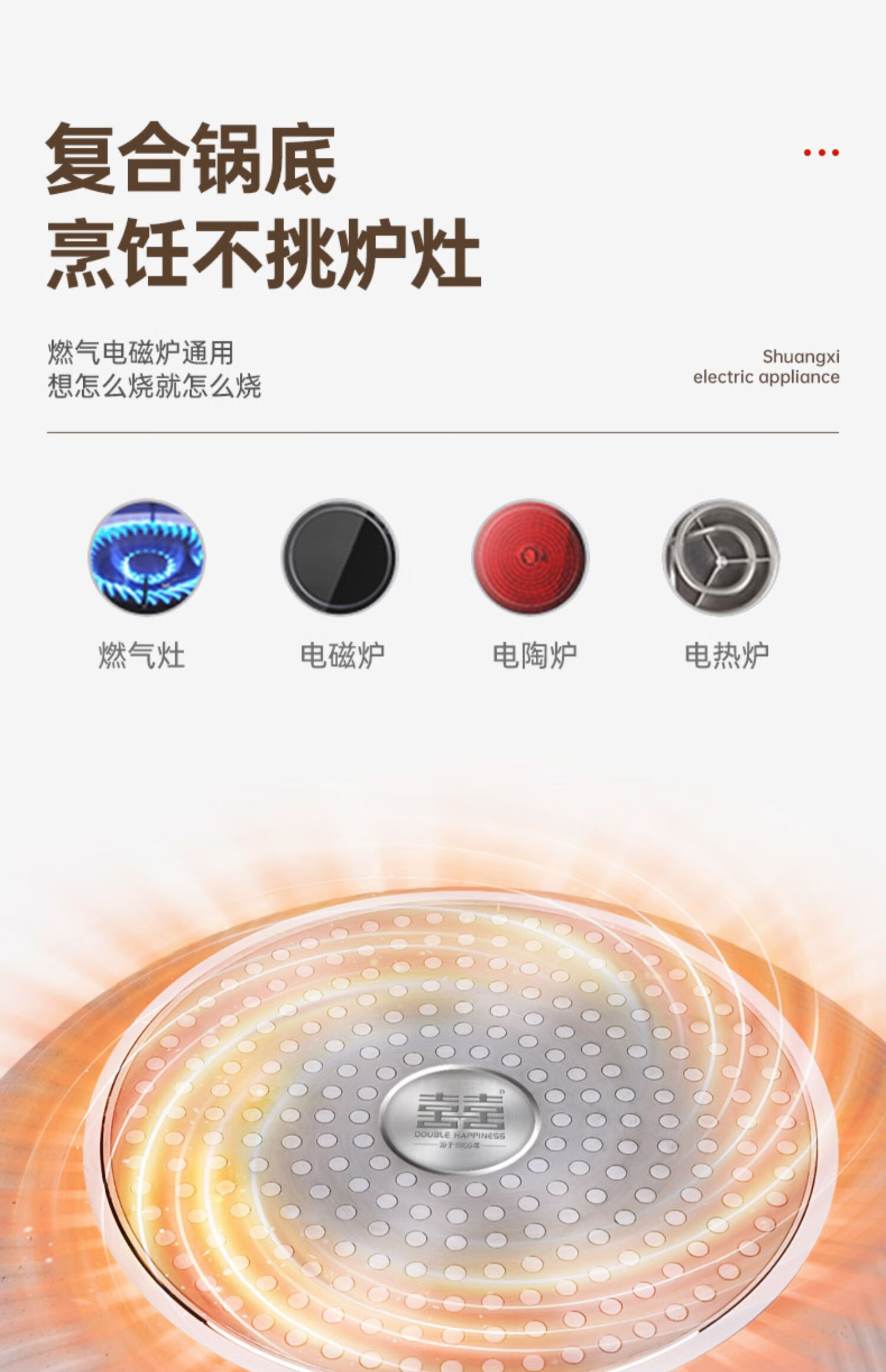 双喜铂锐套装炒锅34cm CC-34FBK03