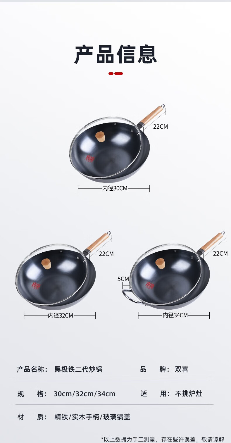 商品名称:双喜黑极铁(2代)套装炒锅32cm CC-32JB01