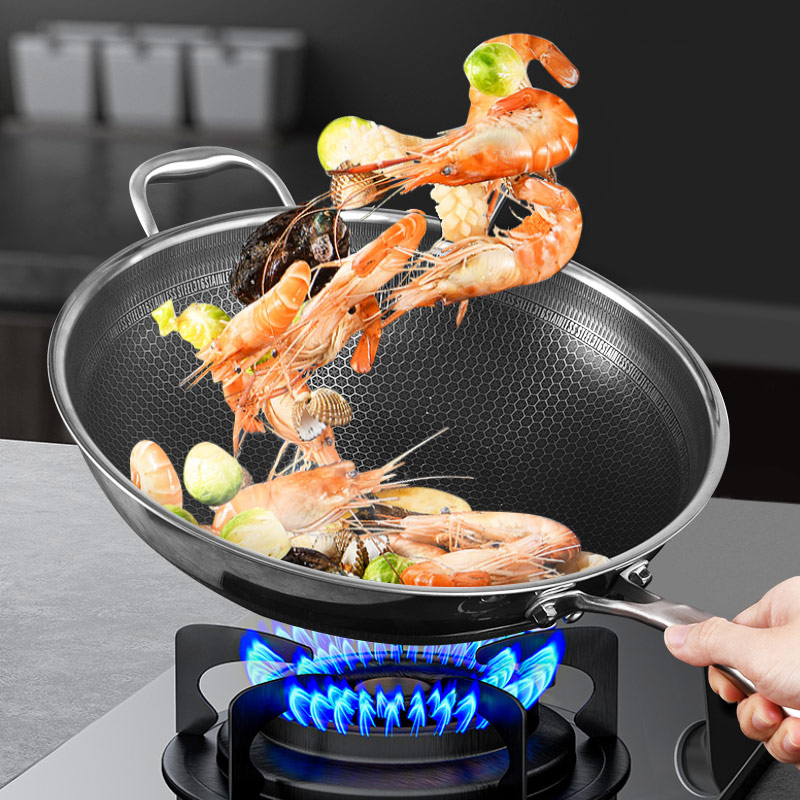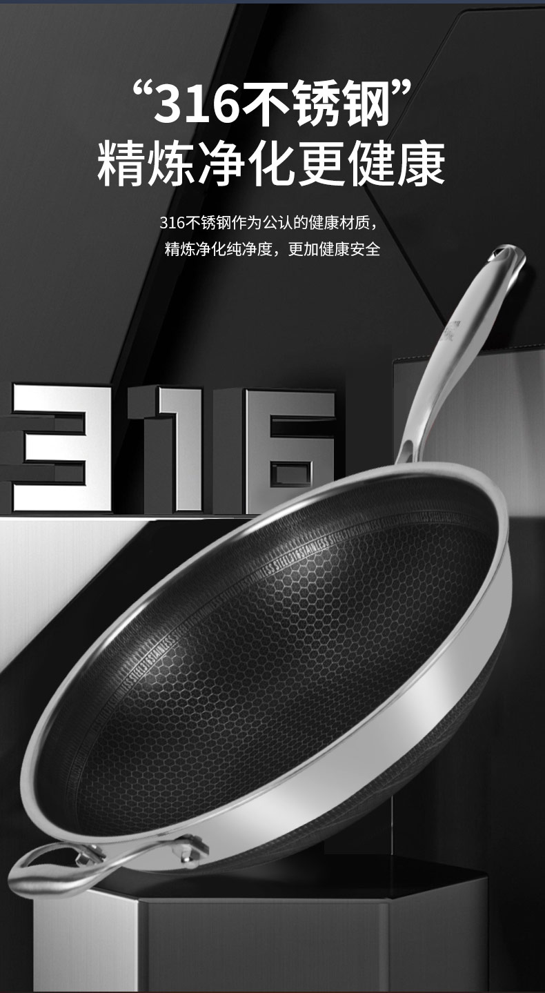 商品名称:双喜316不锈钢双面屏套装炒锅34cm CC-34SKF05