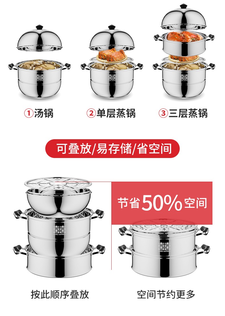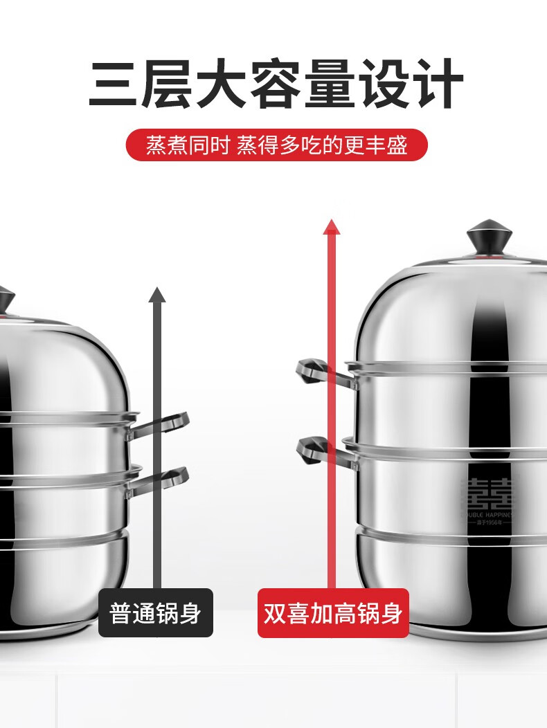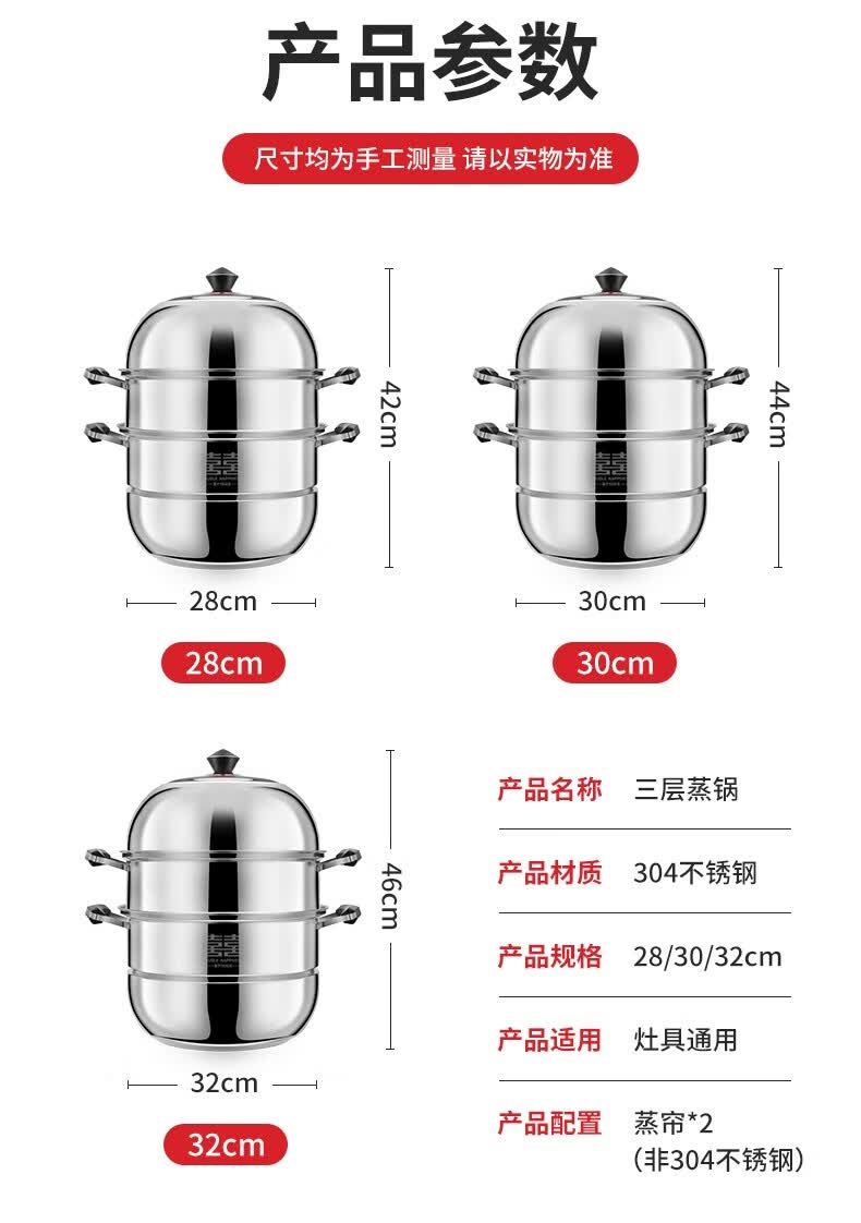 商品名称:双喜不锈钢三层蒸锅32cm SXCZ-32SM02