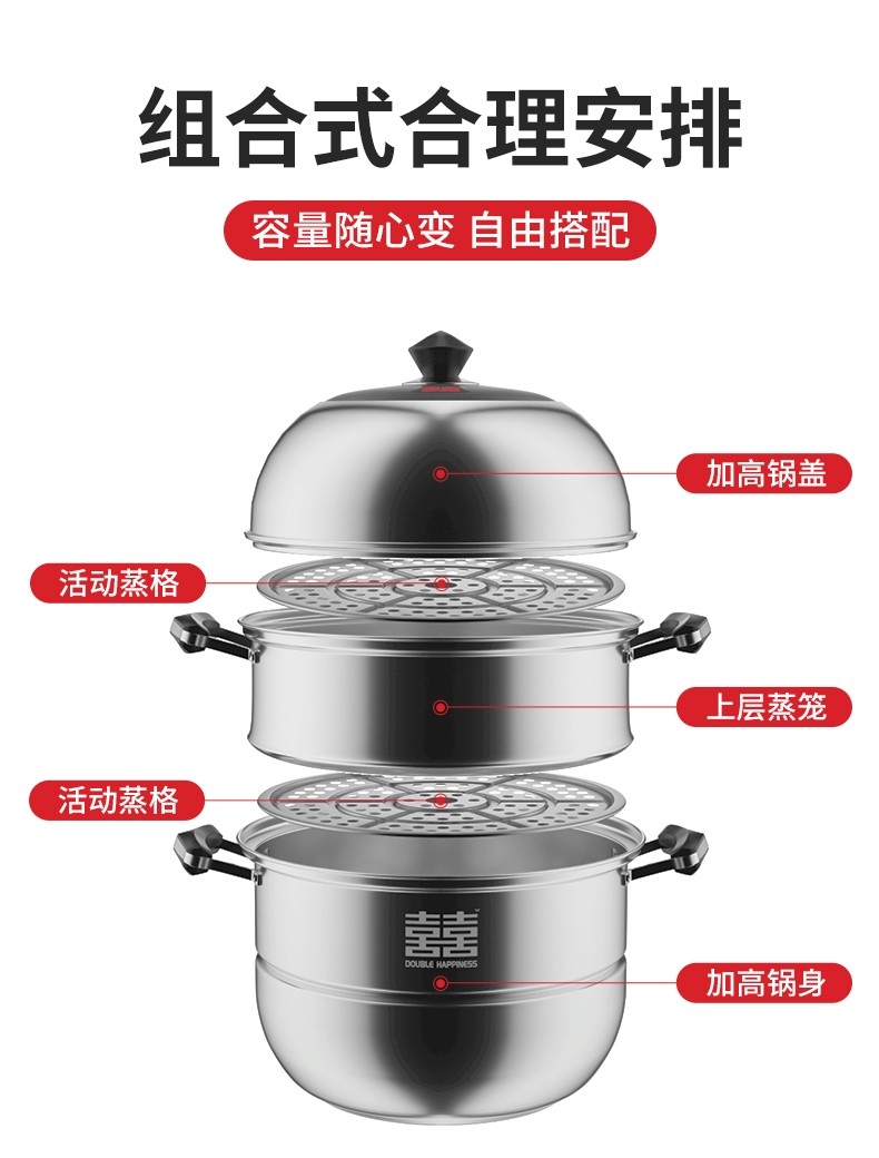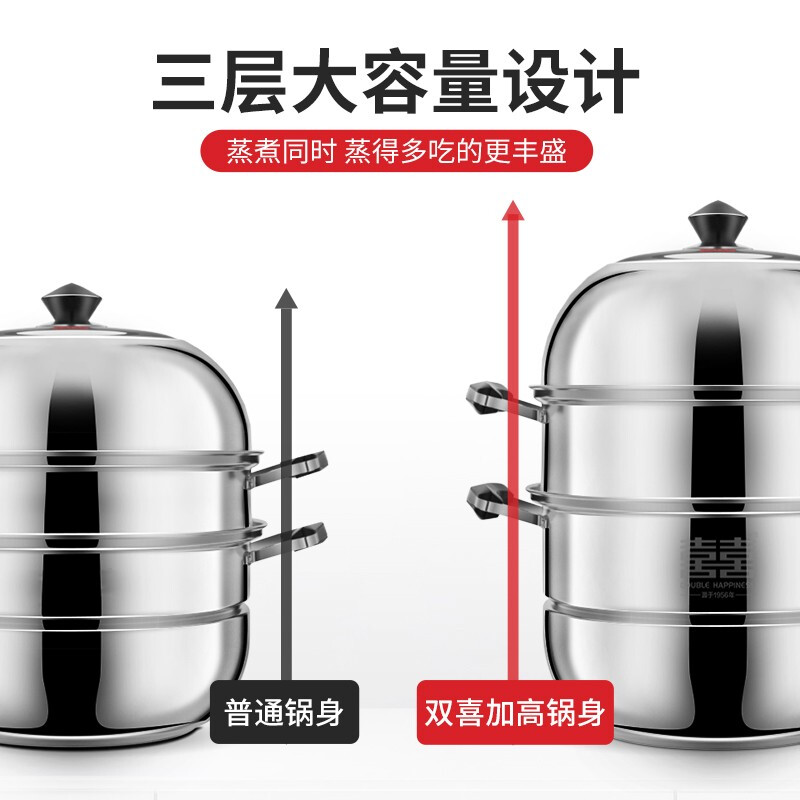 双喜不锈钢三层蒸锅32cm SXCZ-32SM02