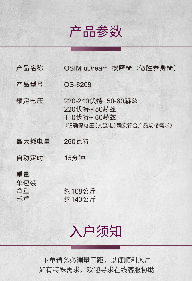 商品名称:傲胜(OSIM)uDream 养身椅(紫色) OS-8208