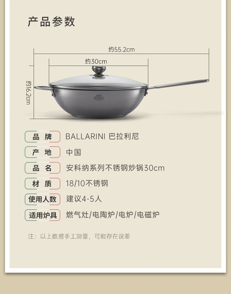 商品名称:巴拉利尼(BALLARINI) 安科纳系列不锈钢炒锅30cm BN-C15/1024858