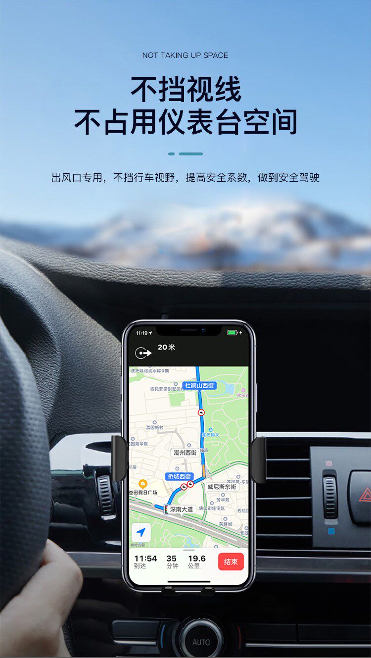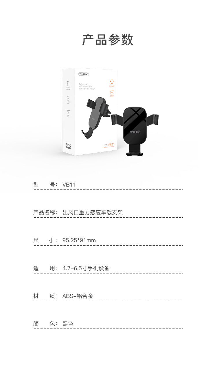 商品名称:沃品(WOPOW)出风口重力感应车载支架导航架手机架小巧便携 95.25*91mm VB11