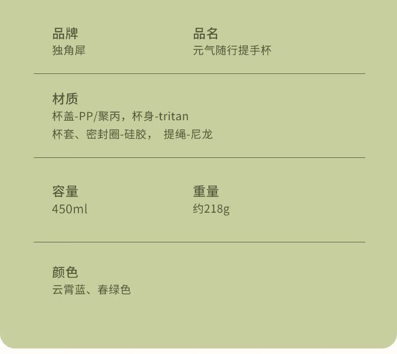 商品名称:独角犀Rhinolife 塑料咖啡杯(Tritan)TD50201501 云霄蓝