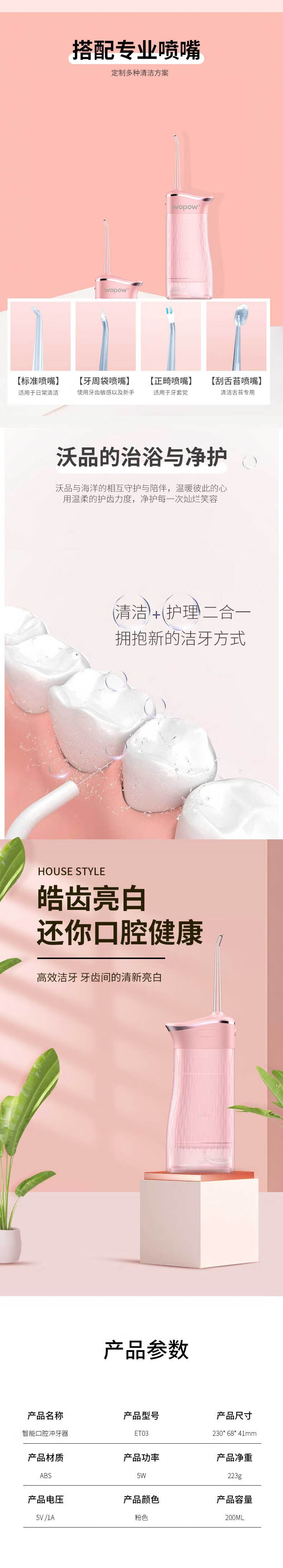 商品名称:WOPOW沃品 便携冲牙器 ETO3