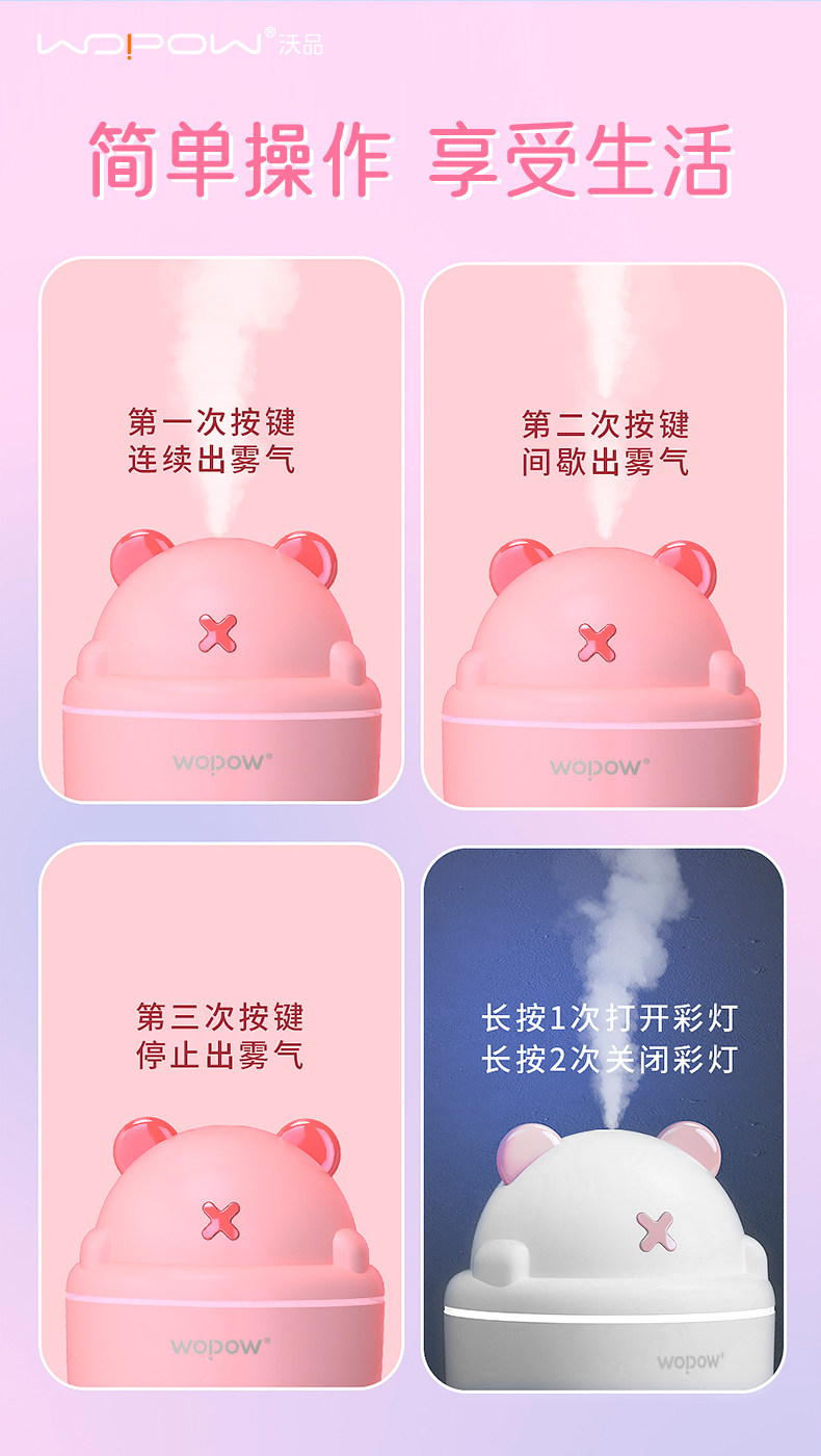 商品名称:沃品 WOPOW 小型喷雾迷你加湿器 HM08