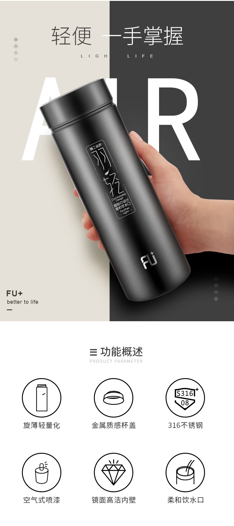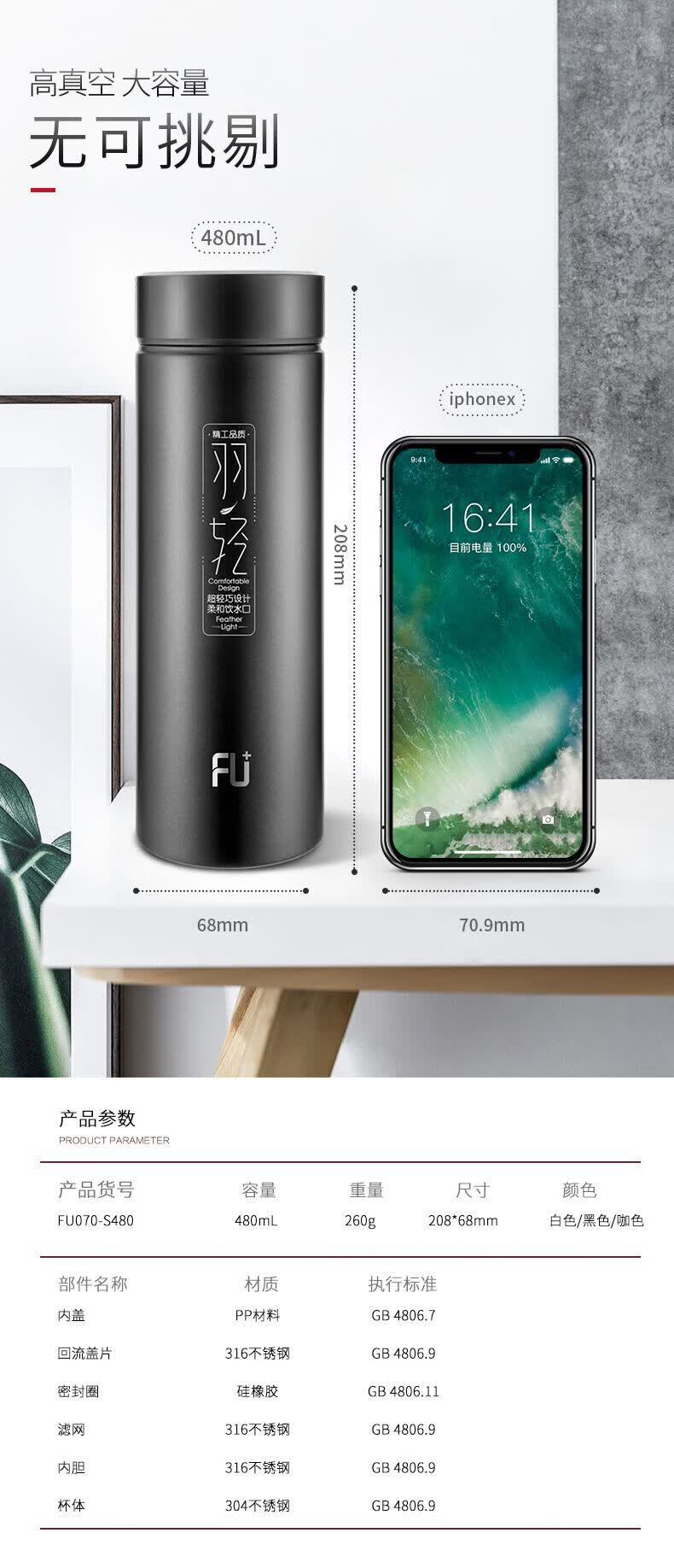 商品名称:富光 FU+自然.羽轻空保温杯 FU070-S480L 480ml
