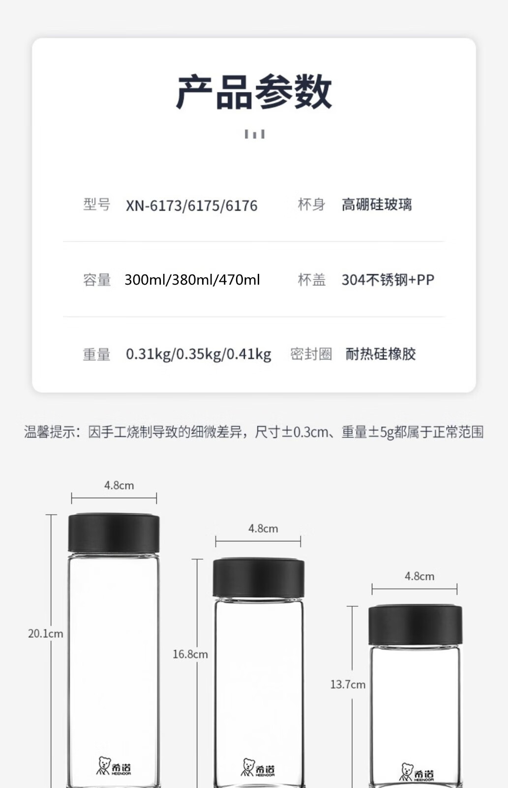 商品名称:希诺(HEENOOR)单层玻璃杯(流通款)XN-6176 470ml