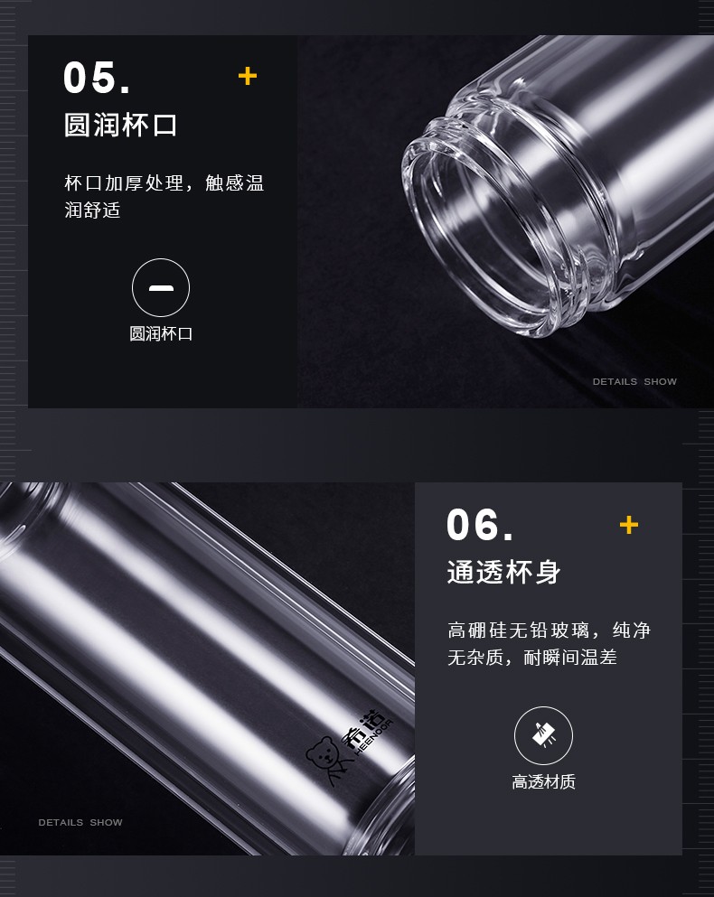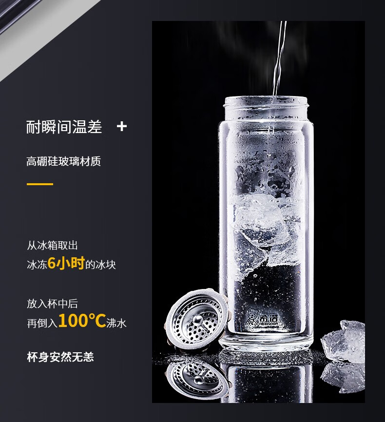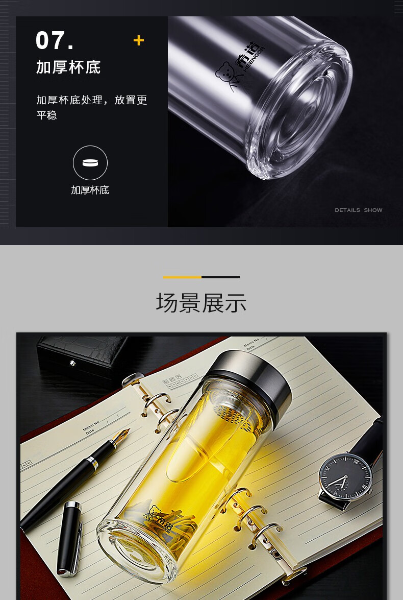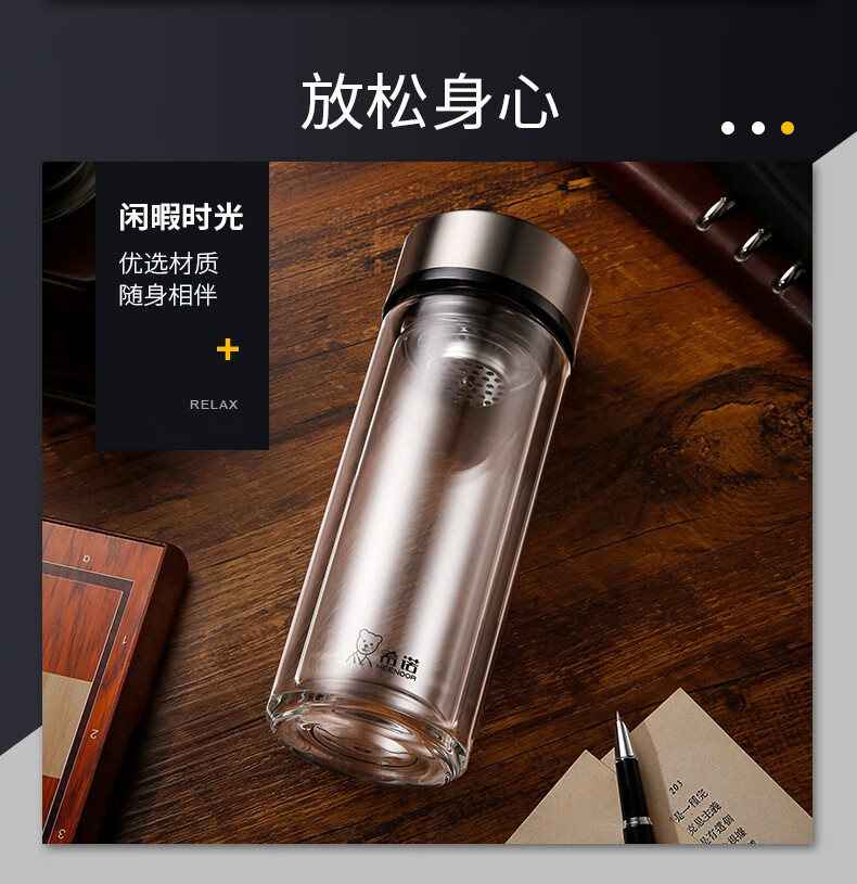 希诺 双层玻璃杯细长加厚隔热办公室便携防烫创意清新泡茶杯 XN-7079
