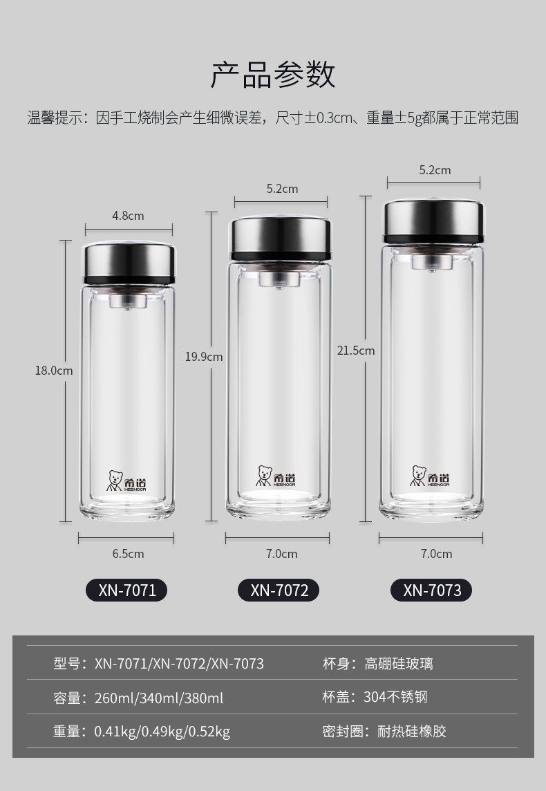 商品名称:希诺(HEENOOR)双层玻璃杯(流通款) XN-7072 340ml