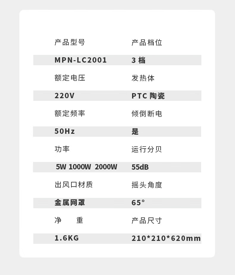 商品名称:美菱(MeLng)MPN-LC2001 暖风机(机械款)