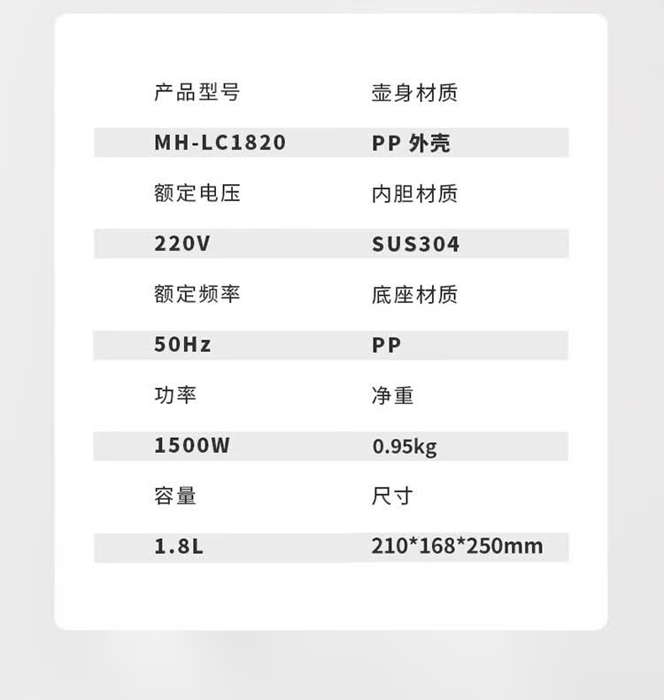 商品名称:美菱(MeiLing)热水壶 MH-LC1820