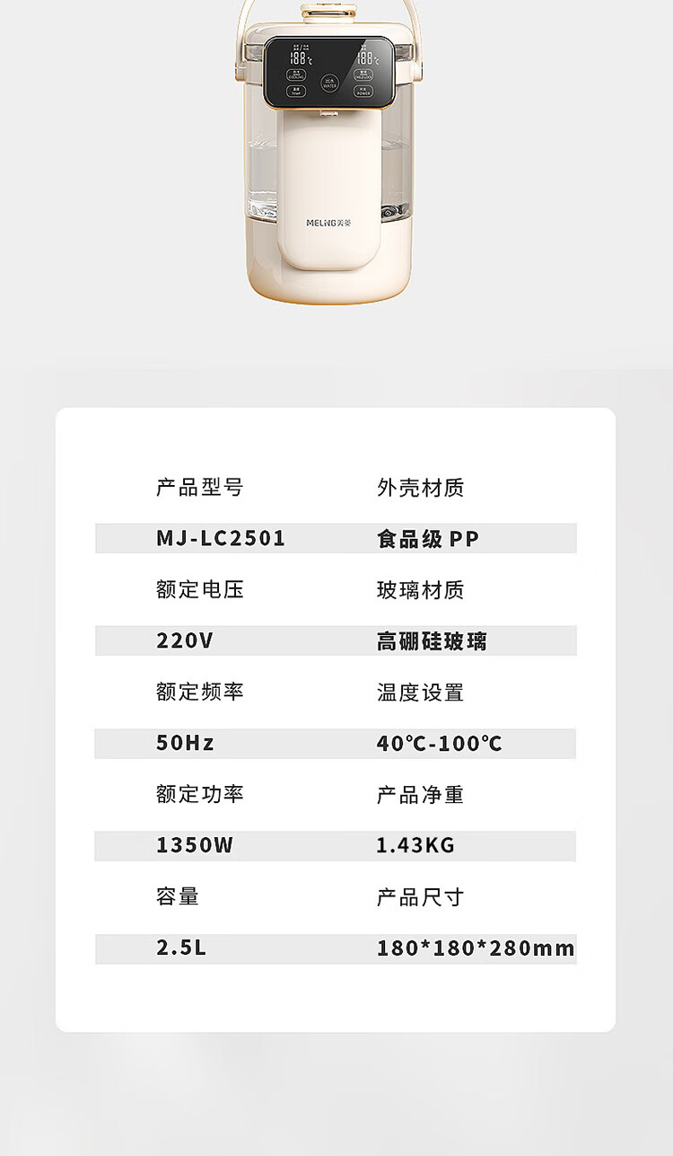 商品名称:美菱(MeiLing)液体加热器(电热开水瓶)2.5L MJ-LC2501