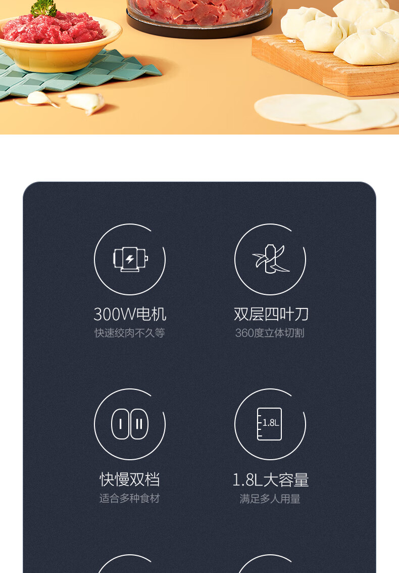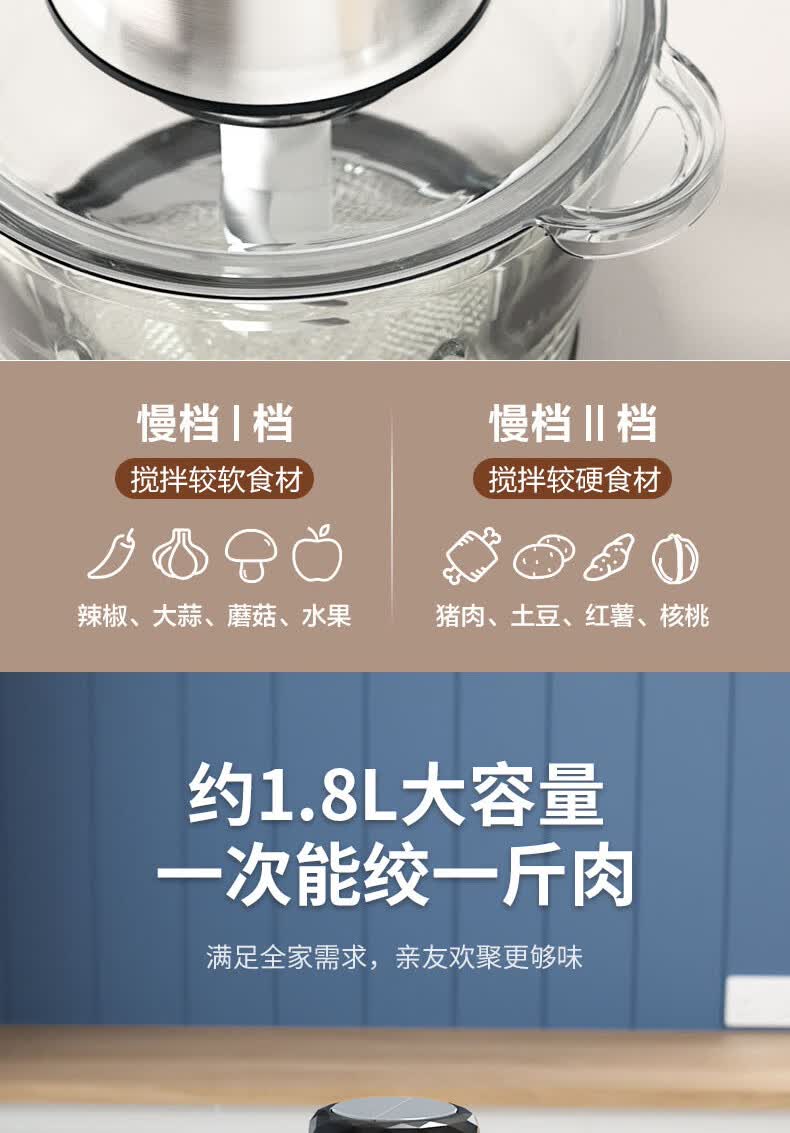 基础功能 :可调档,快速剥蒜,绞肉灌肠