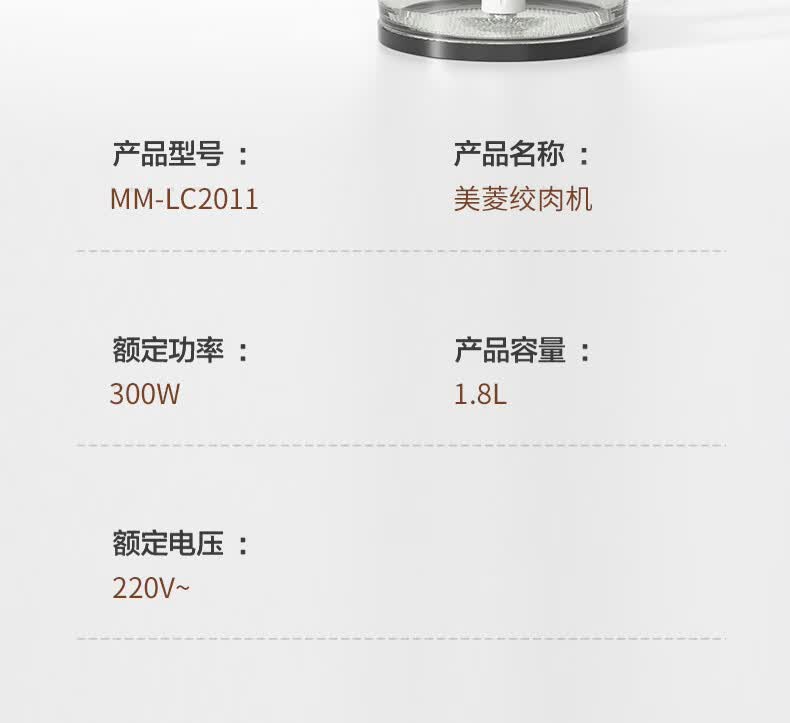 商品名称:美菱(MeLng)MM-LC2011(玻璃款) 食品加工器(碎肉机)