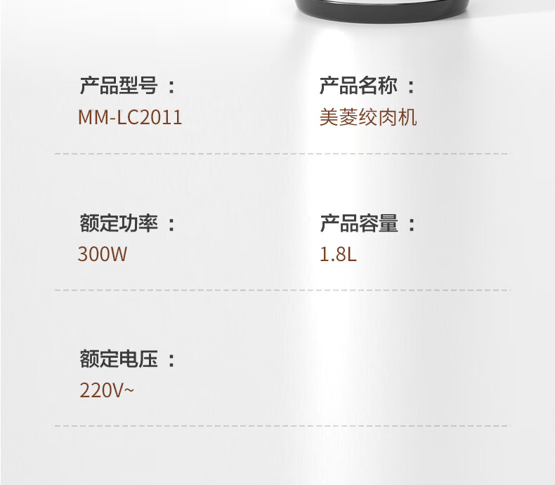 商品名称:美菱(MeLng)MM-LC2011(不锈钢款) 食品加工器(碎肉机)