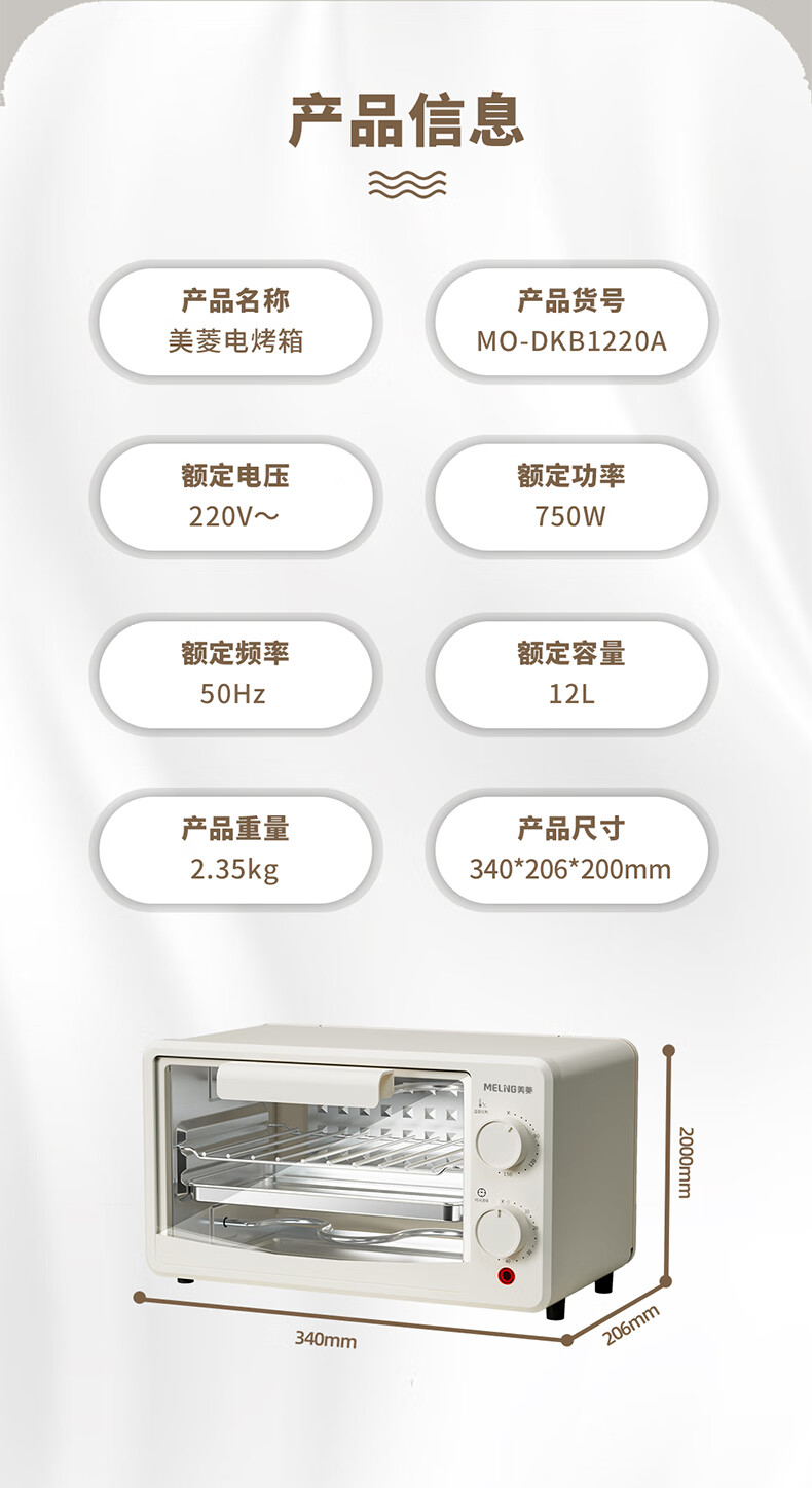 商品名称:美菱(MELING) 电烤箱 12L MO-DKB1220A