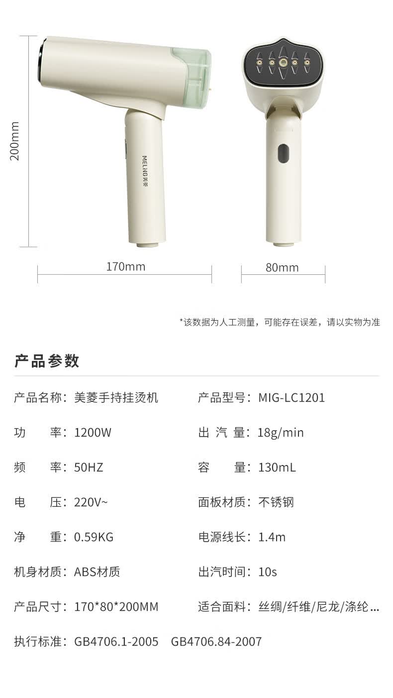 商品名称:美菱(MeLng) MIG-LC1201 手持挂烫机