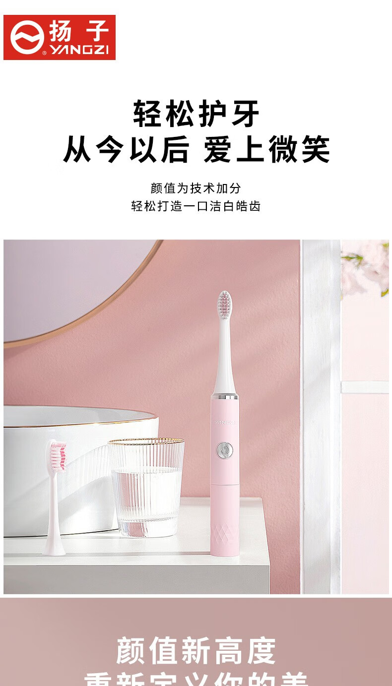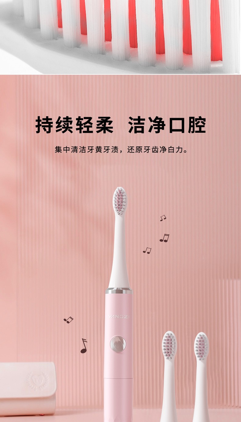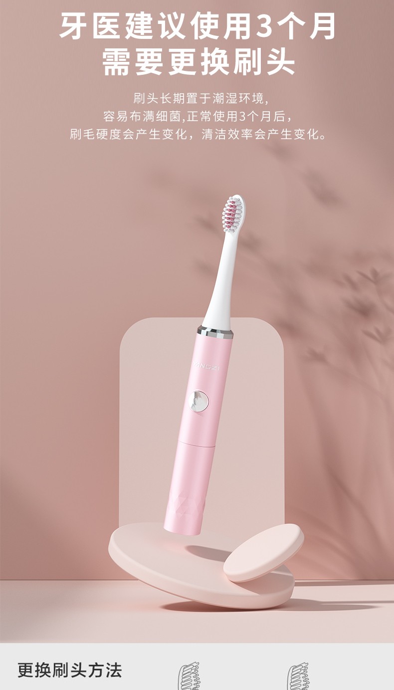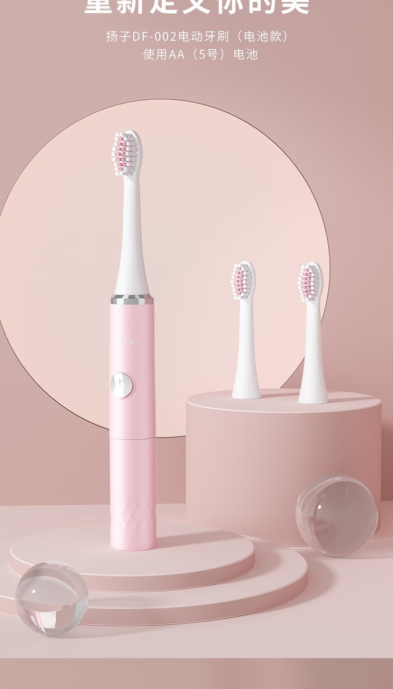 商品名称:扬子 YANGZI DF-002 电动牙刷 (电池款)粉红色
