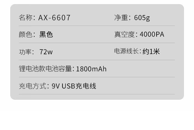 商品名称:扬子 YANGZI AX-6607 无线吸尘器