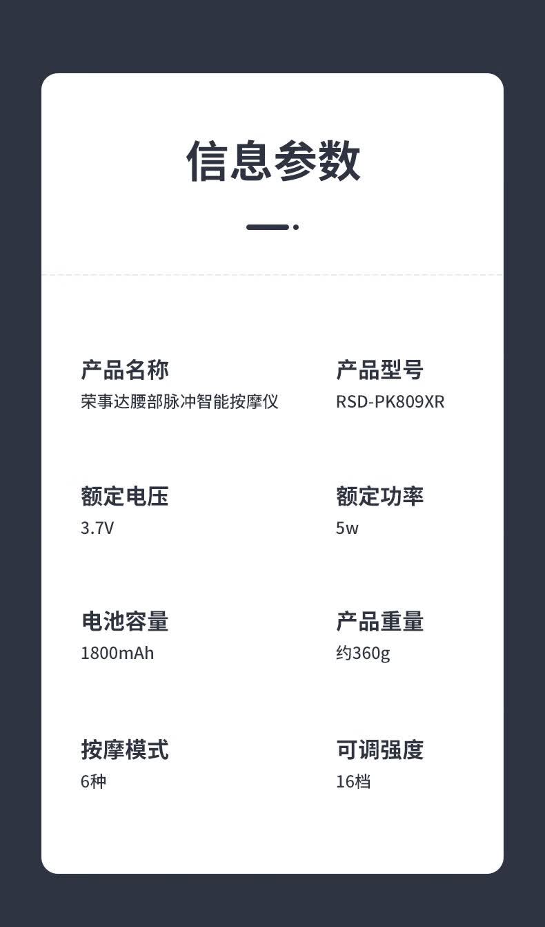 商品名称:荣事达 RSD-PK809XR 腰部按摩仪