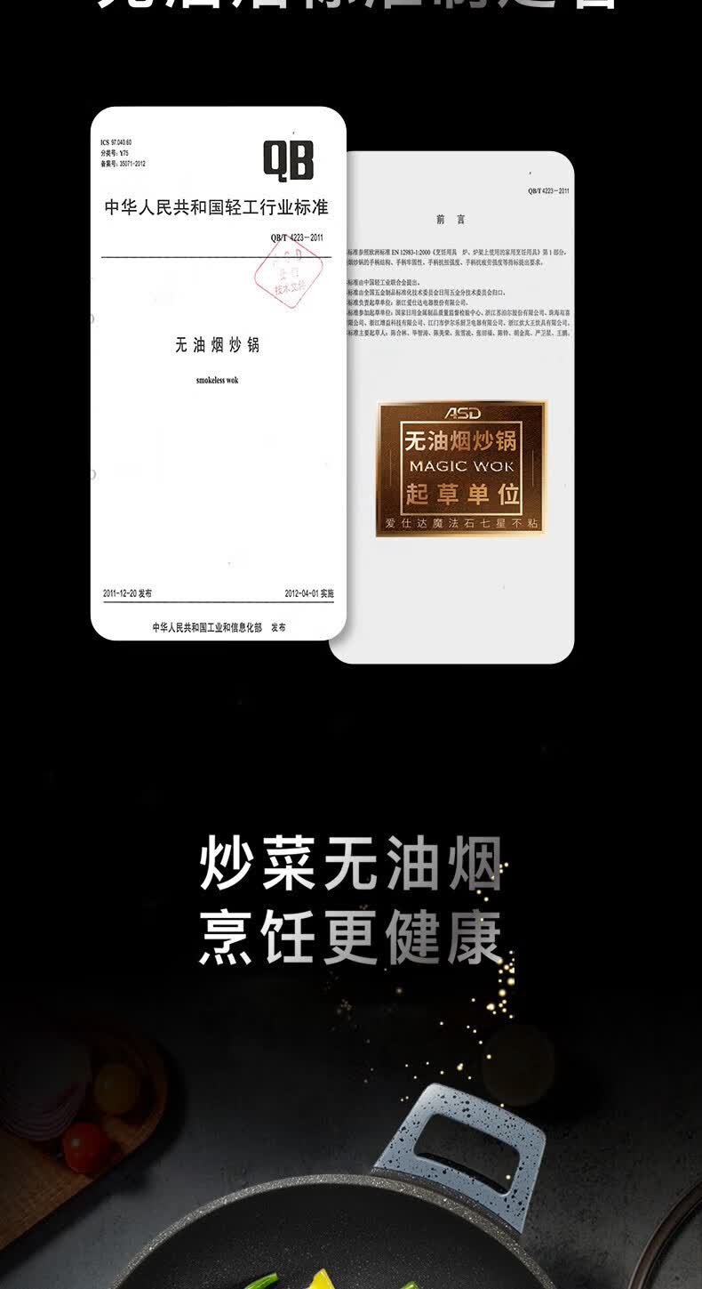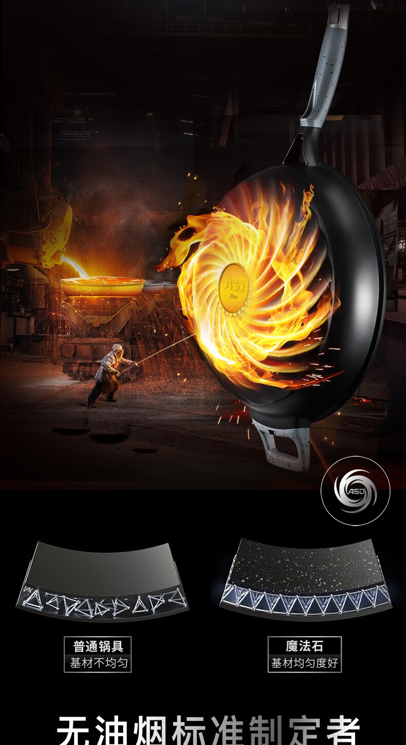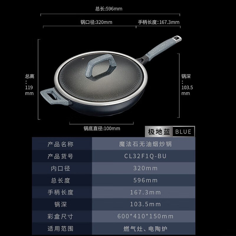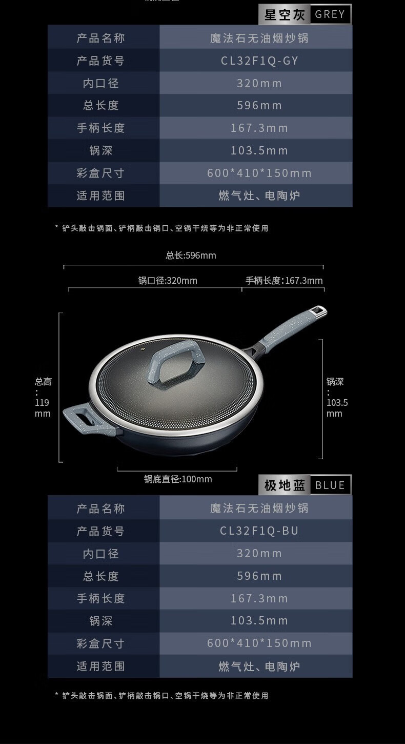 商品名称:爱仕达(ASD)魔法石无油烟炒锅 CL32F1Q-GY(星空灰)/CL32F1Q-BU(极地蓝)
