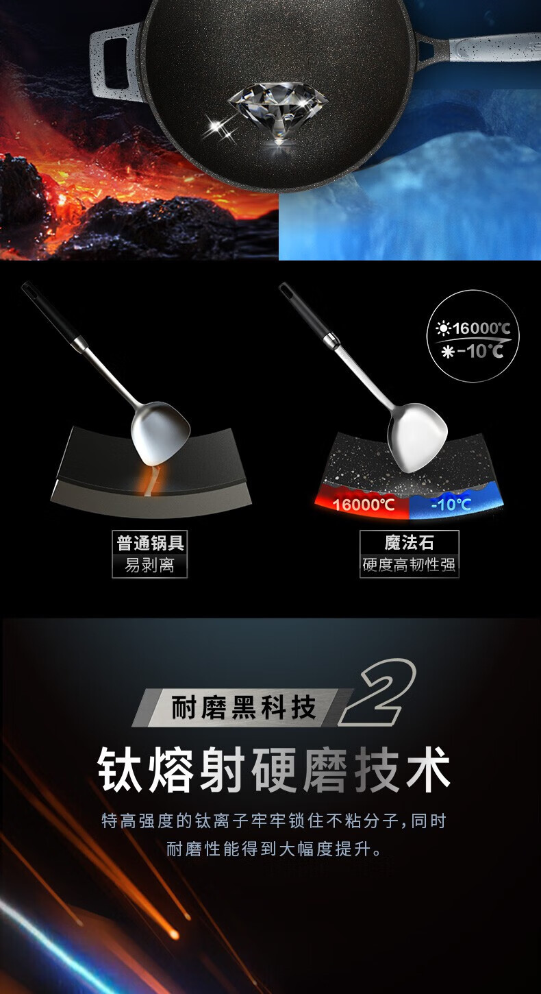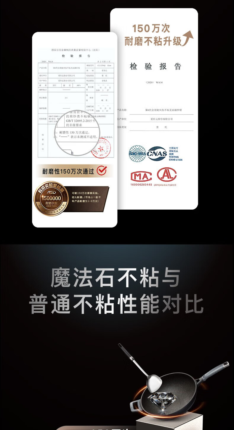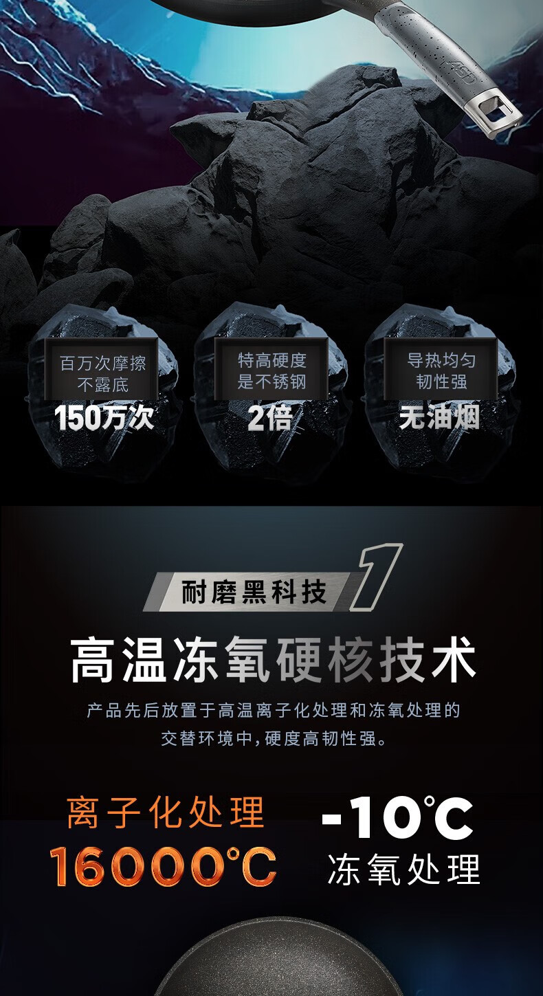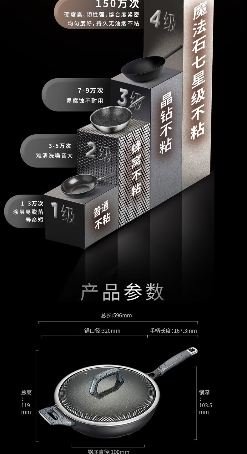 商品名称:爱仕达(ASD)魔法石无油烟炒锅 CL32F1Q-GY(星空灰)/CL32F1Q-BU(极地蓝)
