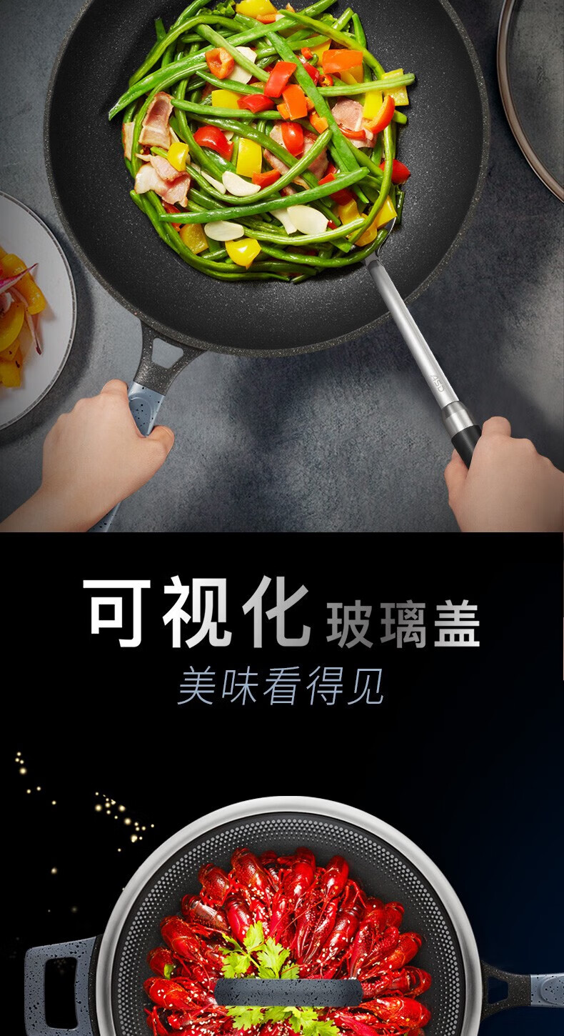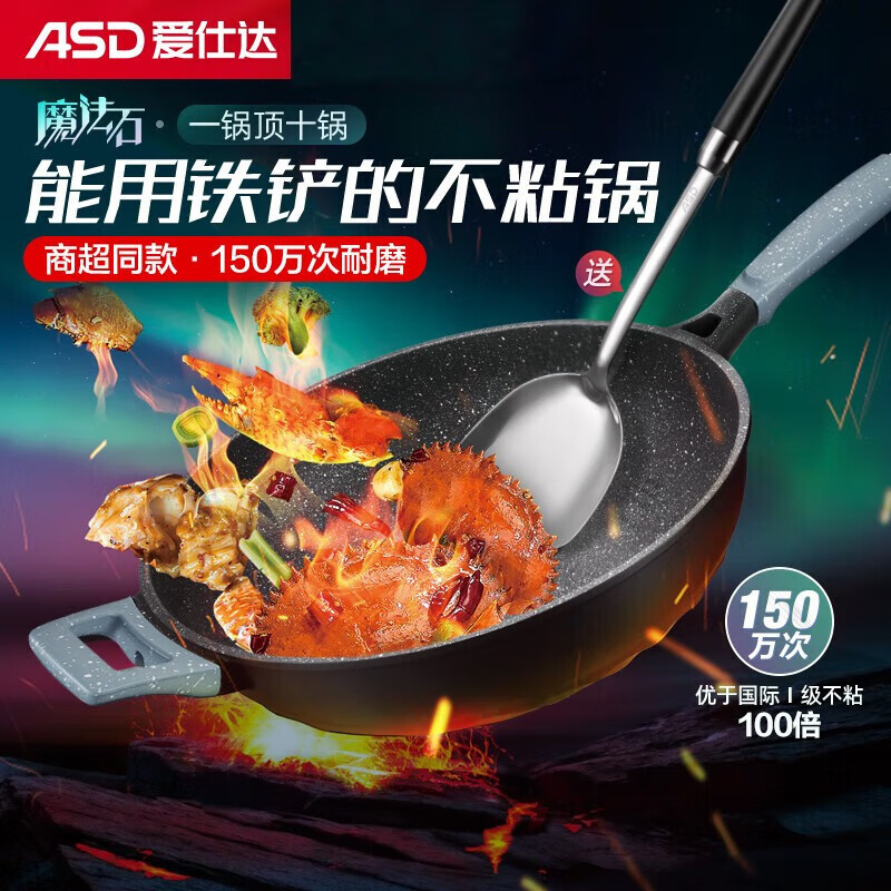 爱仕达(ASD)魔法石无油烟炒锅 CL32F1Q-GY(星空灰)/CL32F1Q-BU(极地蓝)