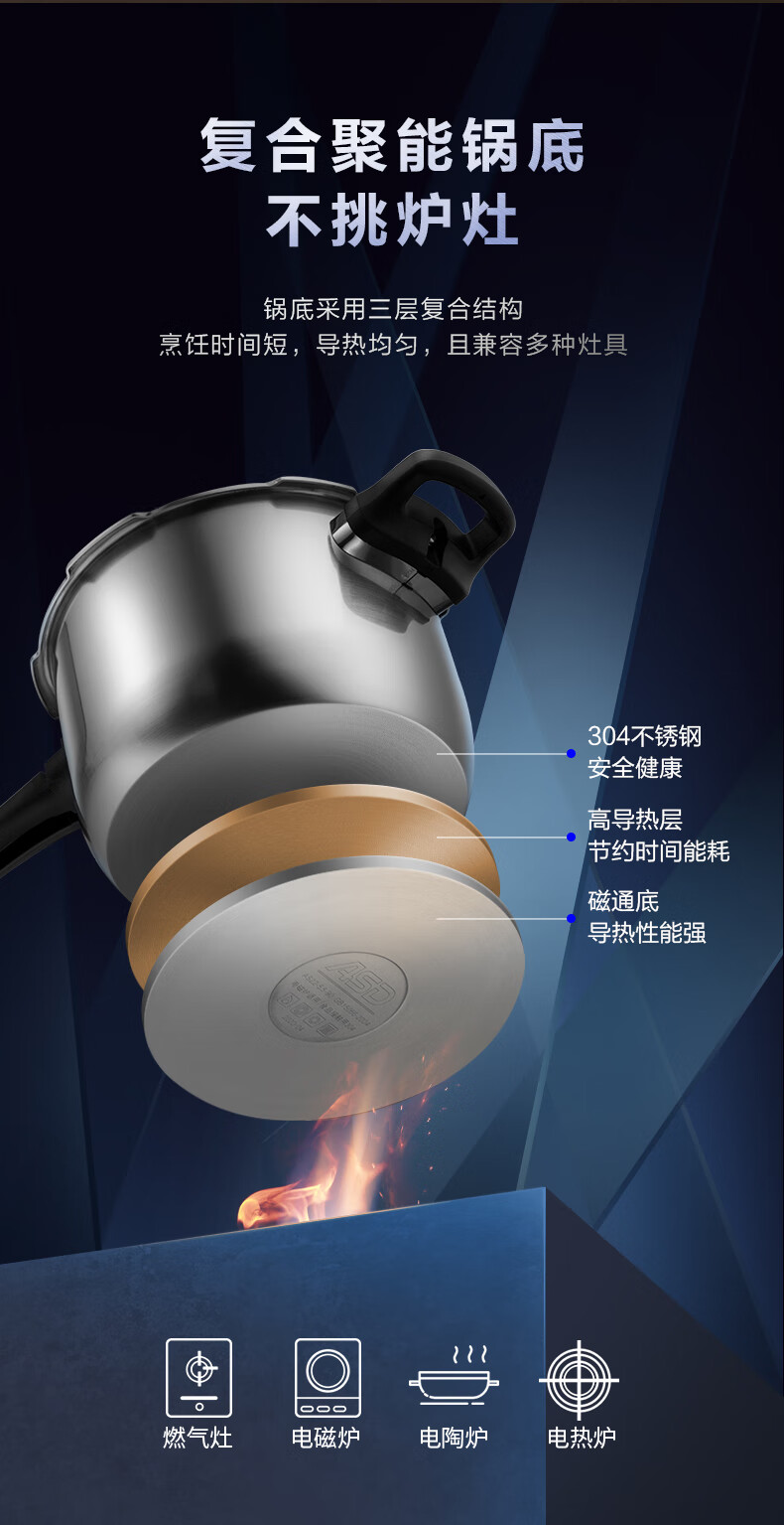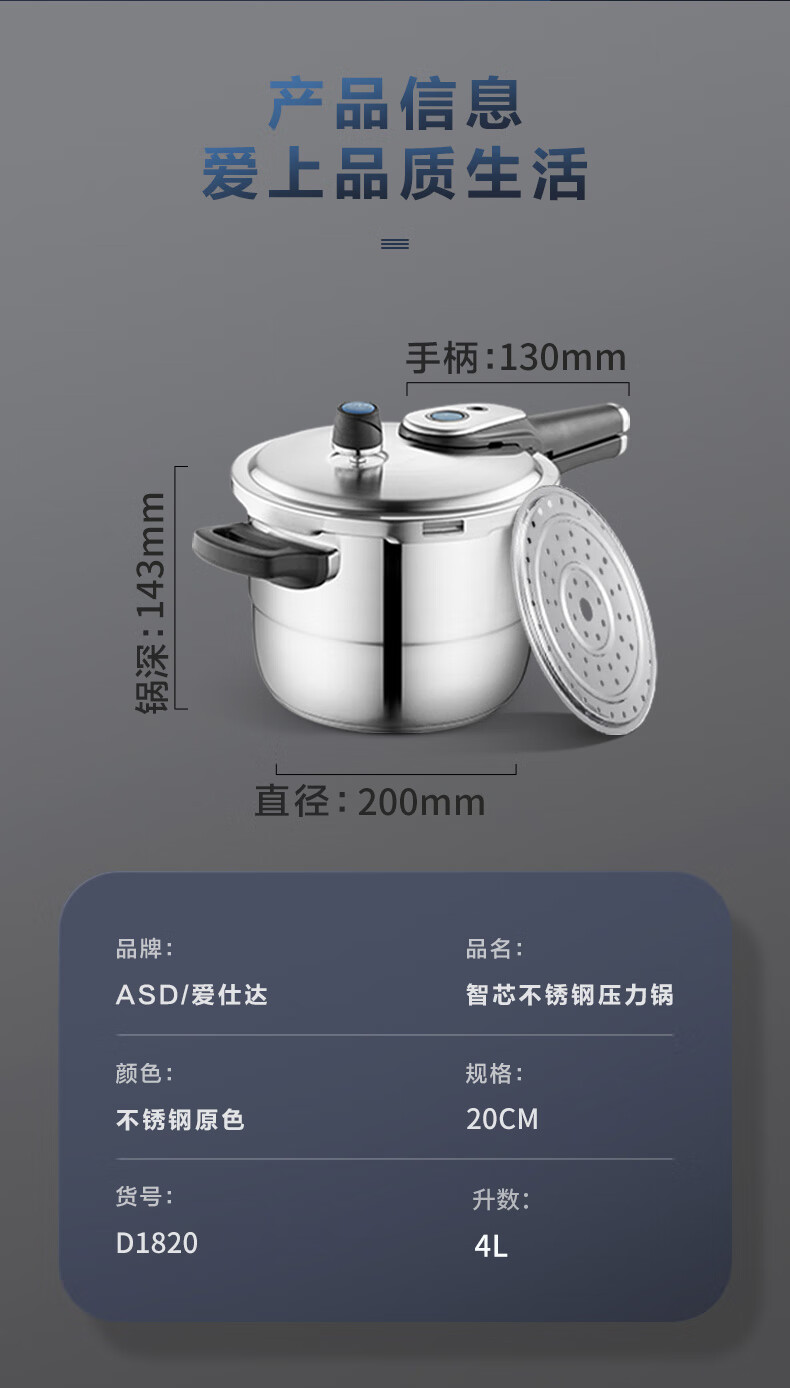 商品名称:爱仕达ASD 智芯不锈钢压力锅 20cm D1820