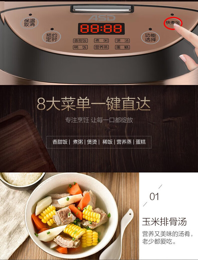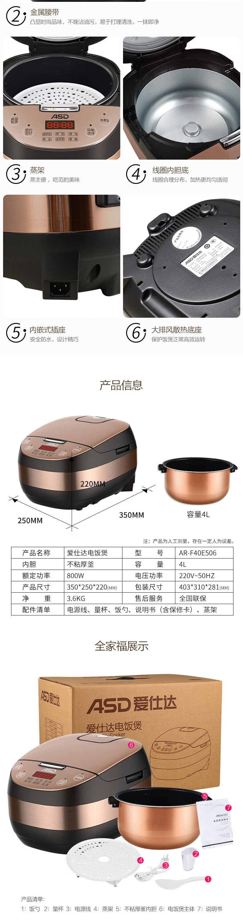 商品名称:爱仕达(ASD)智享系列电饭煲 4L AR-F40E506