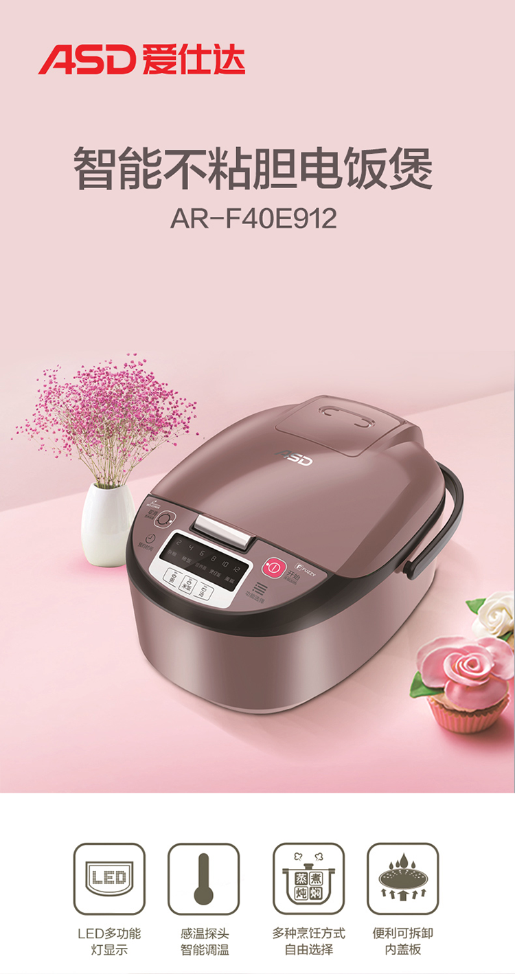 商品名称:爱仕达 智享系列电饭煲 AR-F40E912 褐色 4L