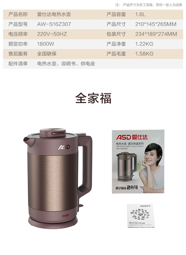 商品名称:爱仕达(ASD)真空保温系列电水壶 AW-S16Z307