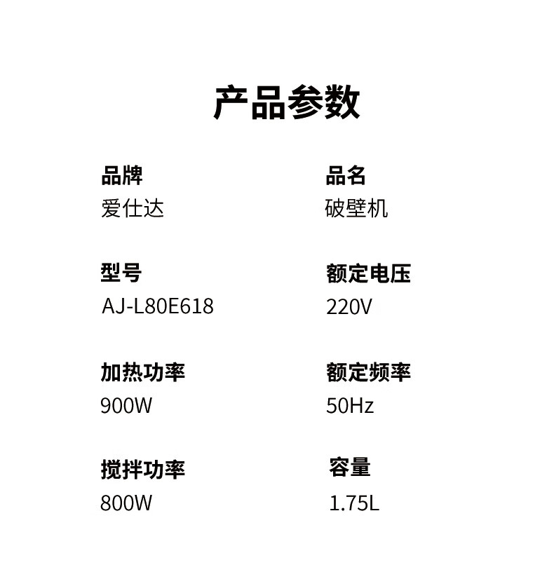 商品名称:爱仕达(ASD)多功能破壁机系列 AJ-L80E618