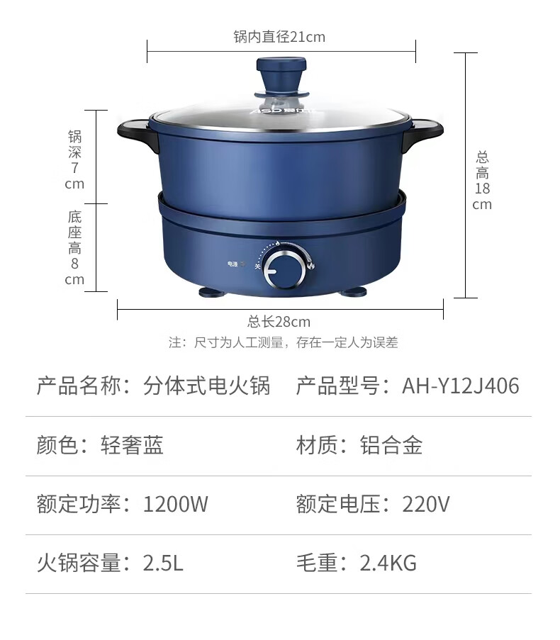 商品名称:爱仕达(ASD)趣嗨锅系列电火锅 AH-Y12J406 2.5L/1200W