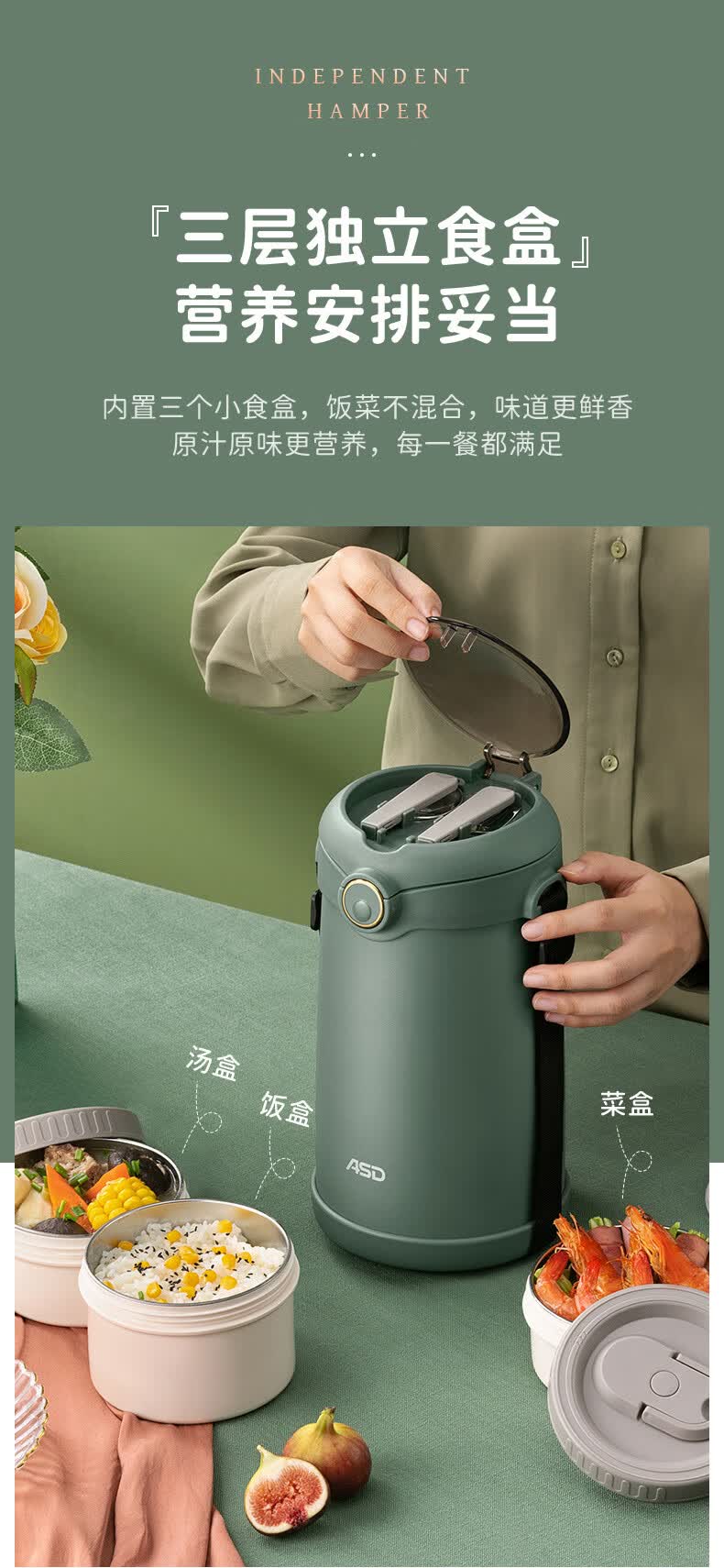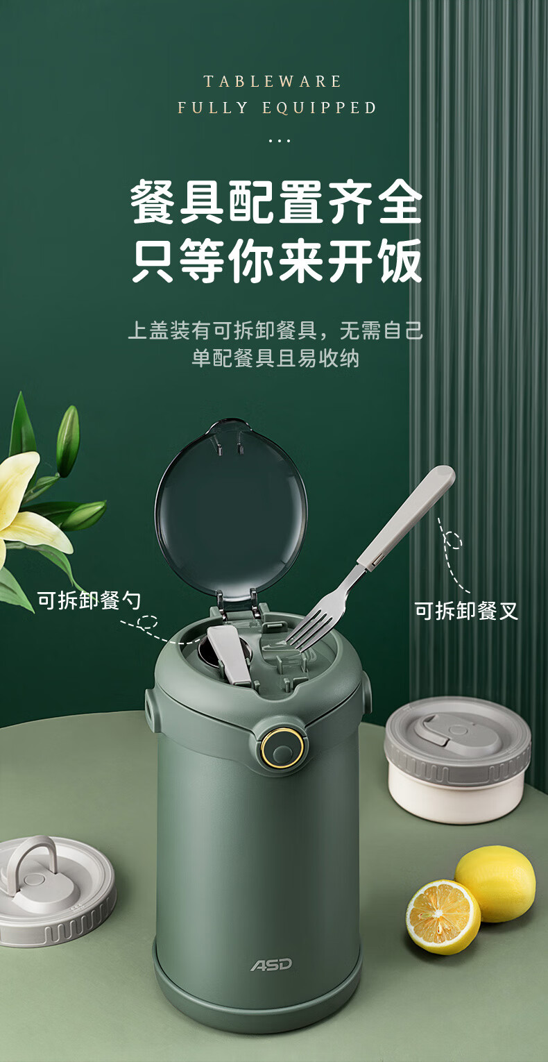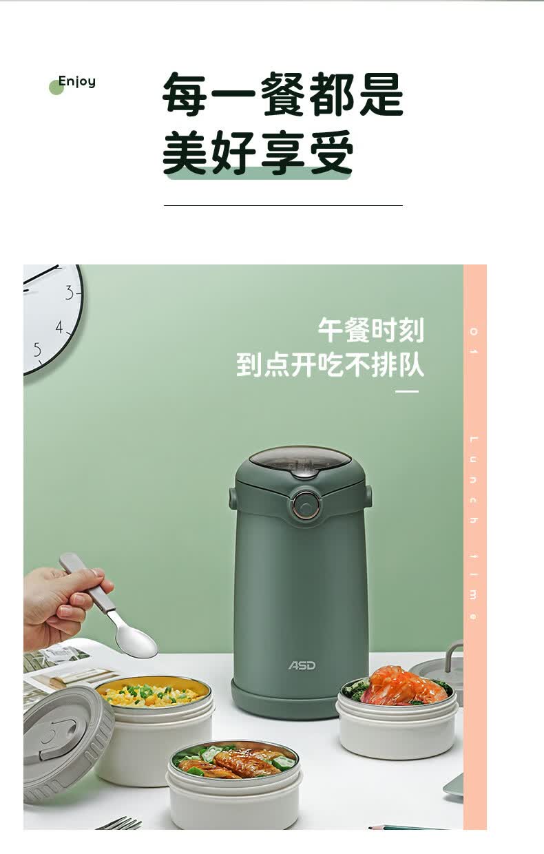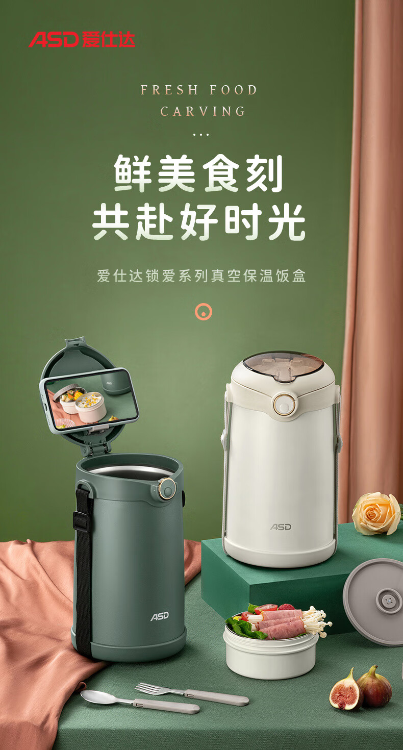 爱仕达(ASD)锁爱系列真空保温饭盒 RWS23H5WG-G/RWS23H5WG-W