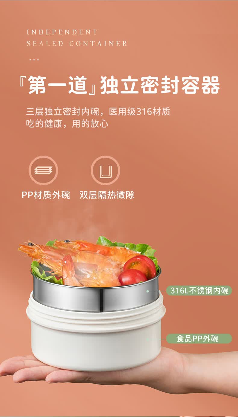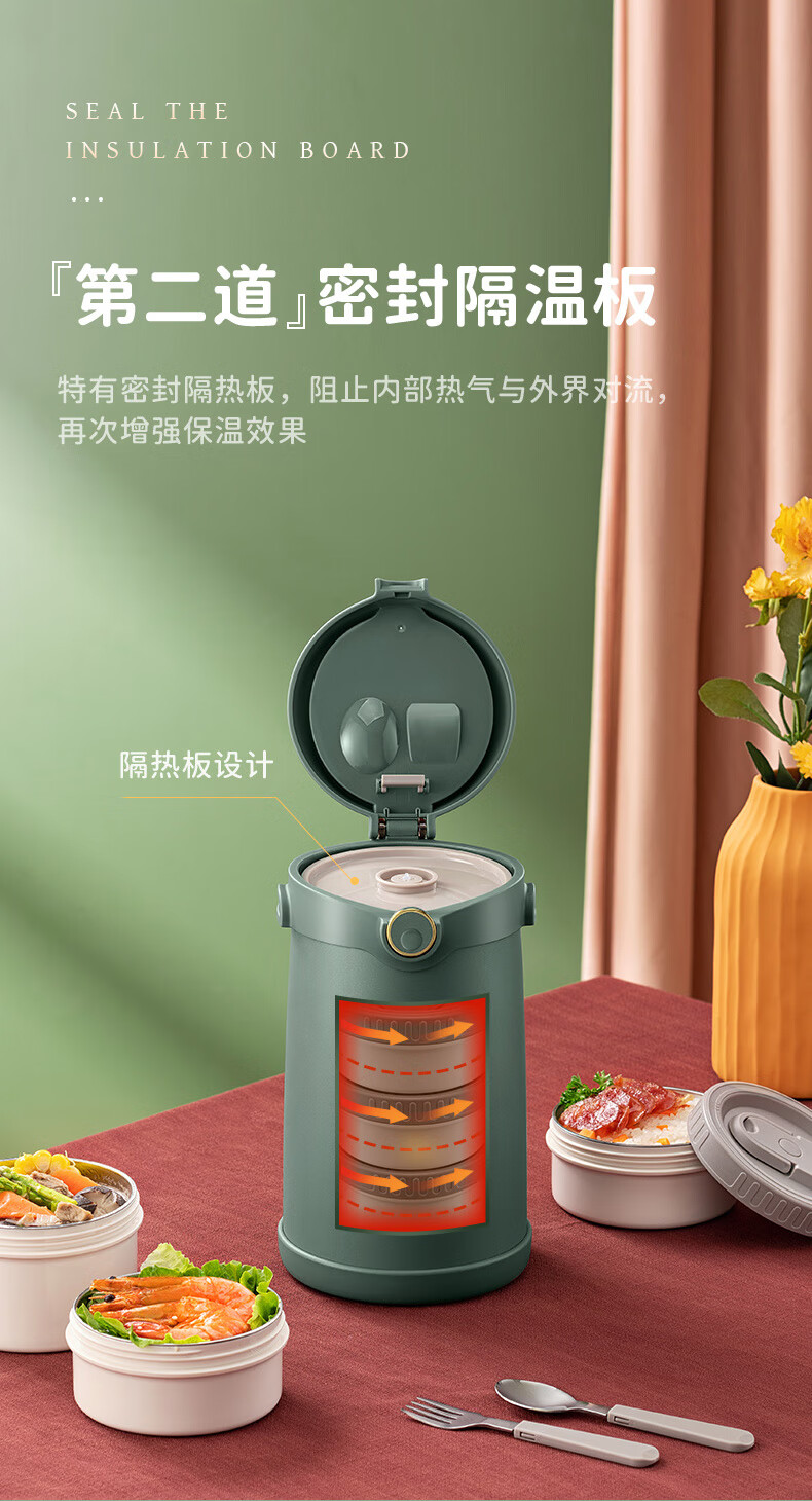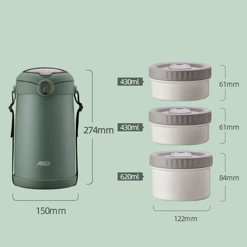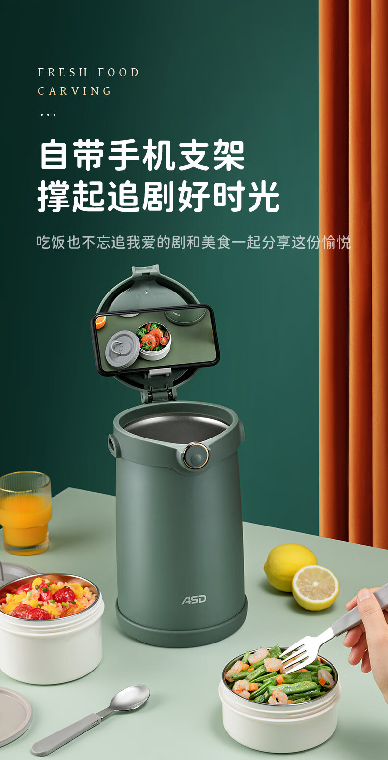 爱仕达(ASD)锁爱系列真空保温饭盒 RWS23H5WG-G/RWS23H5WG-W