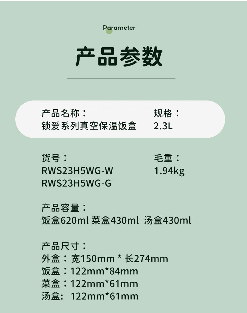 商品名称:爱仕达(ASD)锁爱系列真空保温饭盒 RWS23H5WG-G/RWS23H5WG-W