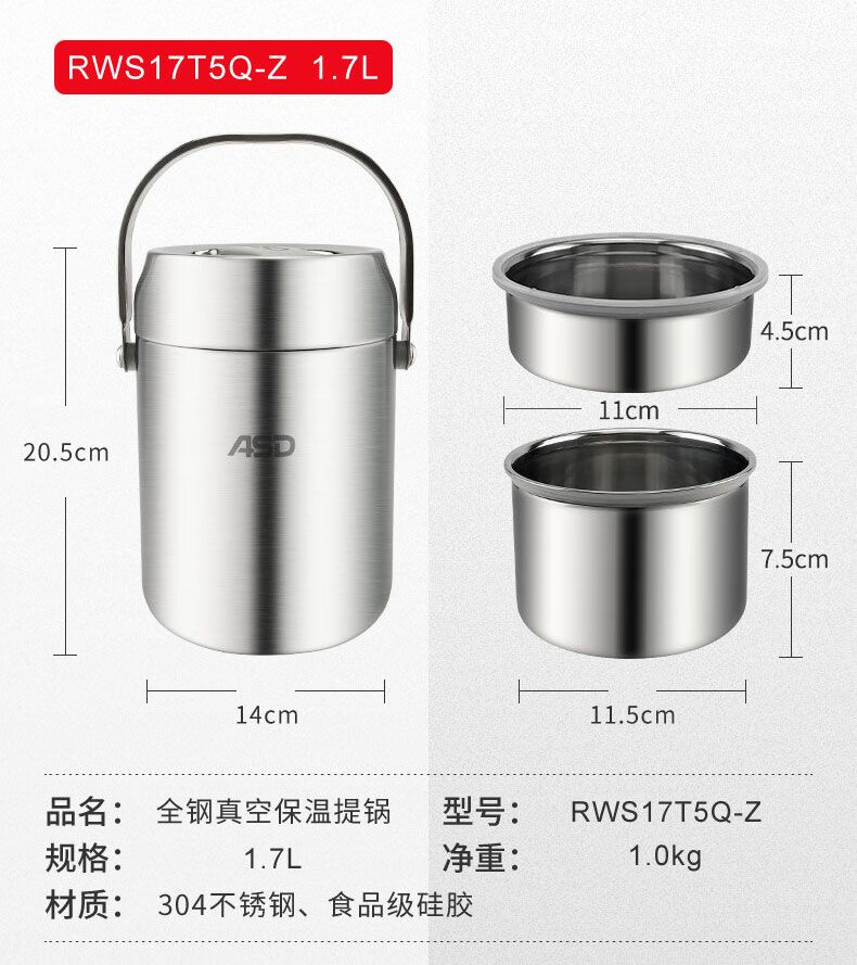 商品名称:爱仕达(ASD)经典系列·全钢真空提锅 1.7L RWS17T5Q-Z