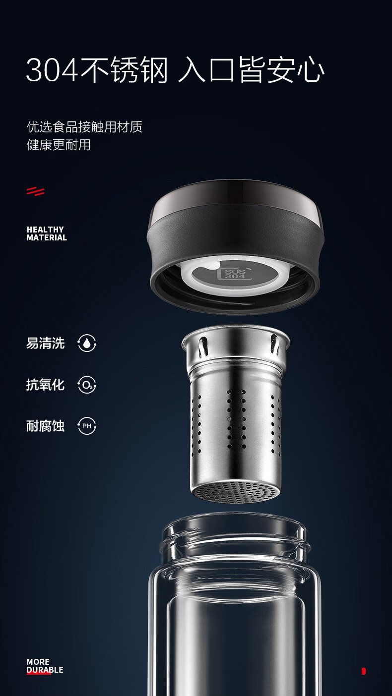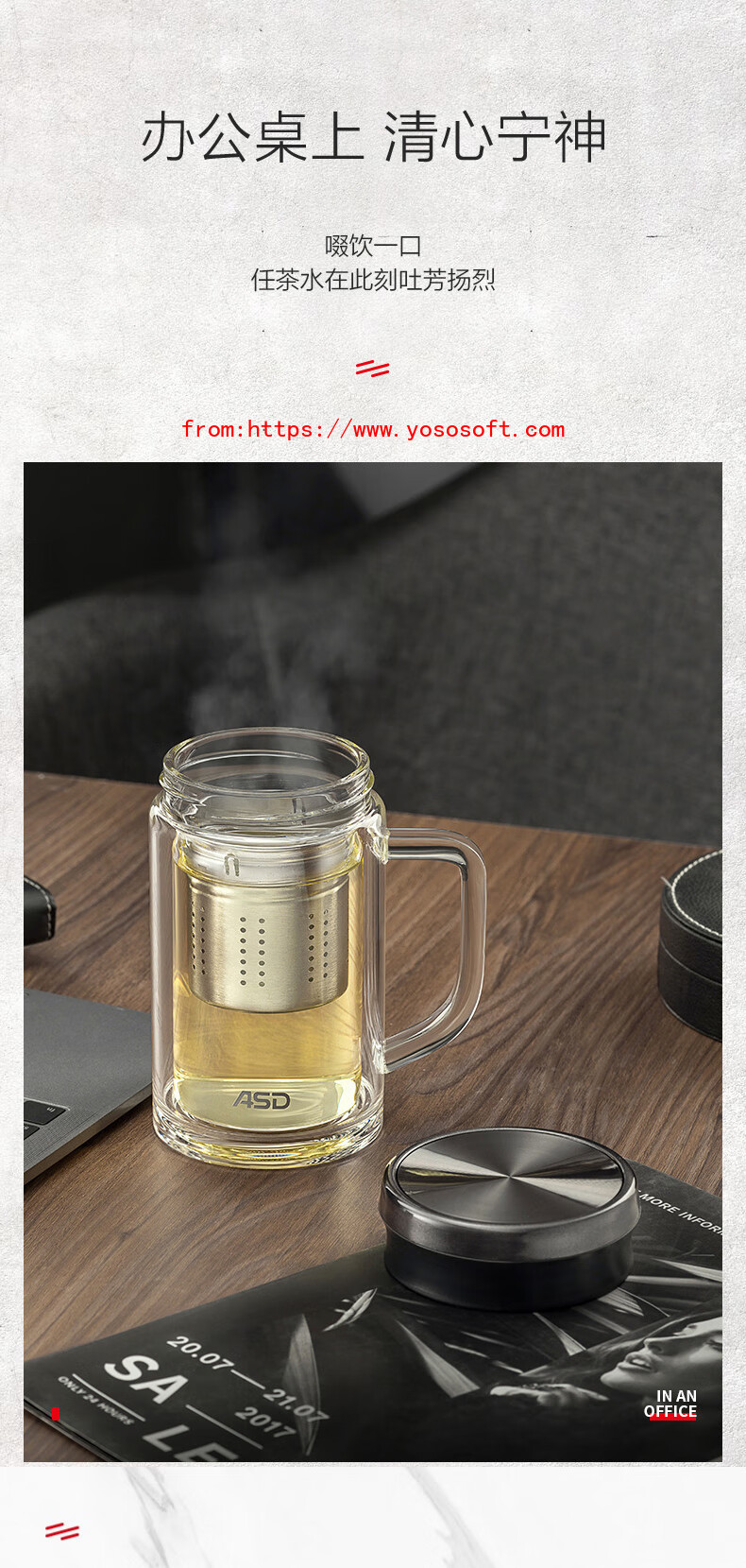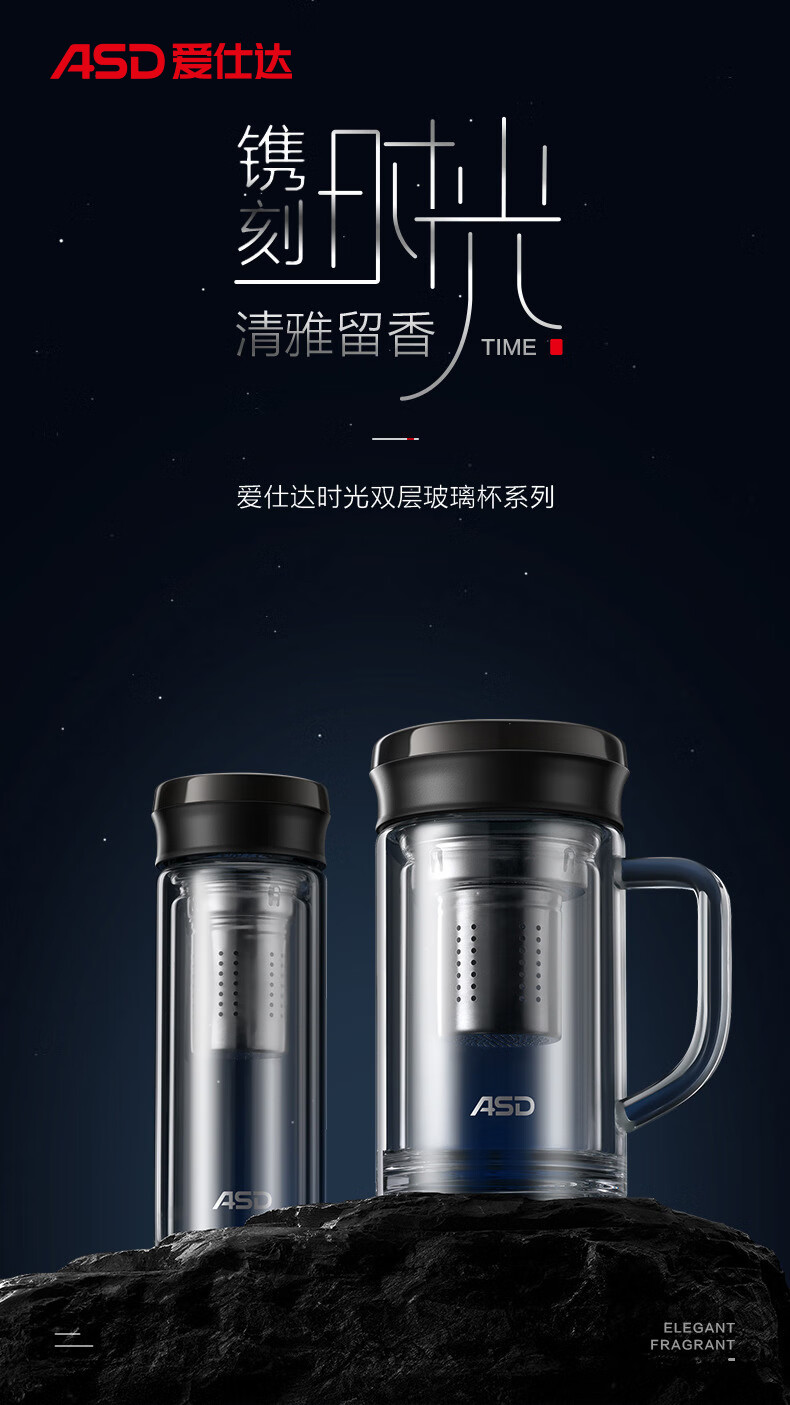 爱仕达ASD 时光系列·双层玻璃办公杯RWB43B5Q